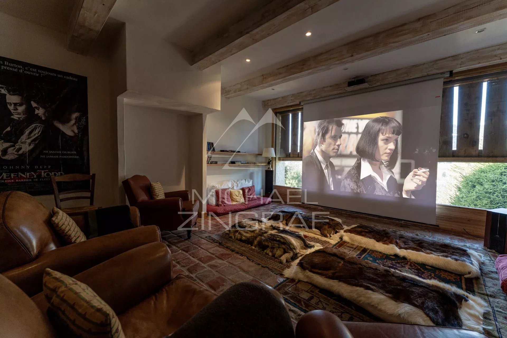 En annexes : une vaste salle de cinéma, une grande buanderie, un garage fermé, des places de stationnement extérieur.