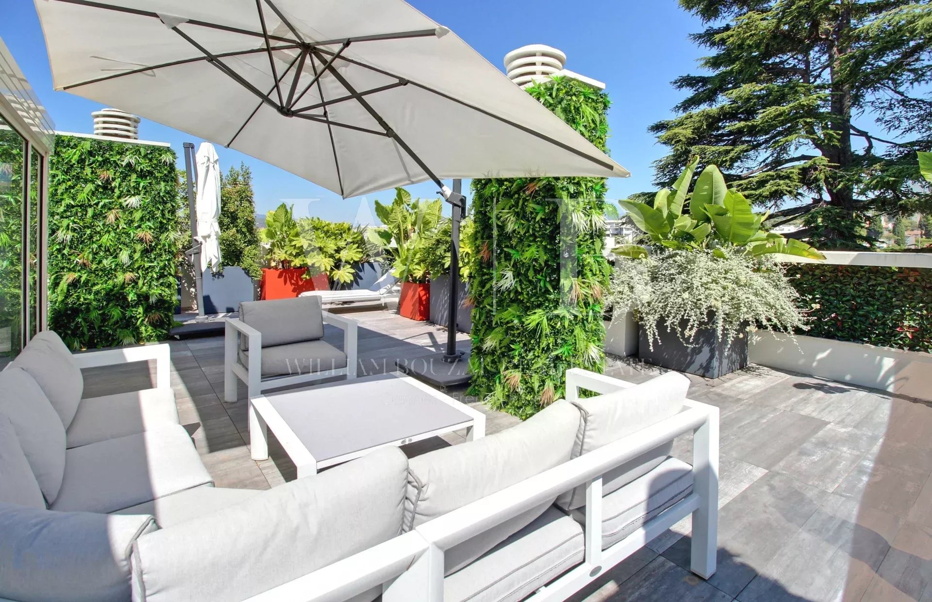 Idéalement situé dans le quartier résidentiel de la Basse Californie (juste en face du nouveau complexe Montfleury avec piscine intérieure, plusieurs terrains de tennis et parc), au sein d'une belle résidence sécurisée elle même disposant d'un très joli parc, splendide penthouse d'environ 150 m² habitables bénéficiant d'une magnifique terrasse végétalisée sur le toit d'environ 135 m² disposant d'une cuisine d'été et un solarium. En dernier étage, ce 4/5 pièces entièrement rénové avec des matériaux de qualité se compose d'une entrée, un double séjour avec cuisine ouverte entièrement aménagée, 3 chambres et 2 salles d'eau, un WC séparé ainsi qu'une buanderie. Au calme absolu, à proximité immédiate de toutes commodités, à 8 min à pieds de la rue d'Antibes, en dernier étage, entièrement climatisé et bénéficiant de luxueuses prestations, l'appartement est vendu avec un garage en sous-sol. Les informations sur les risques auxquels ce bien est exposé sont disponibles sur le site Géorisques : georisques.gouv.fr