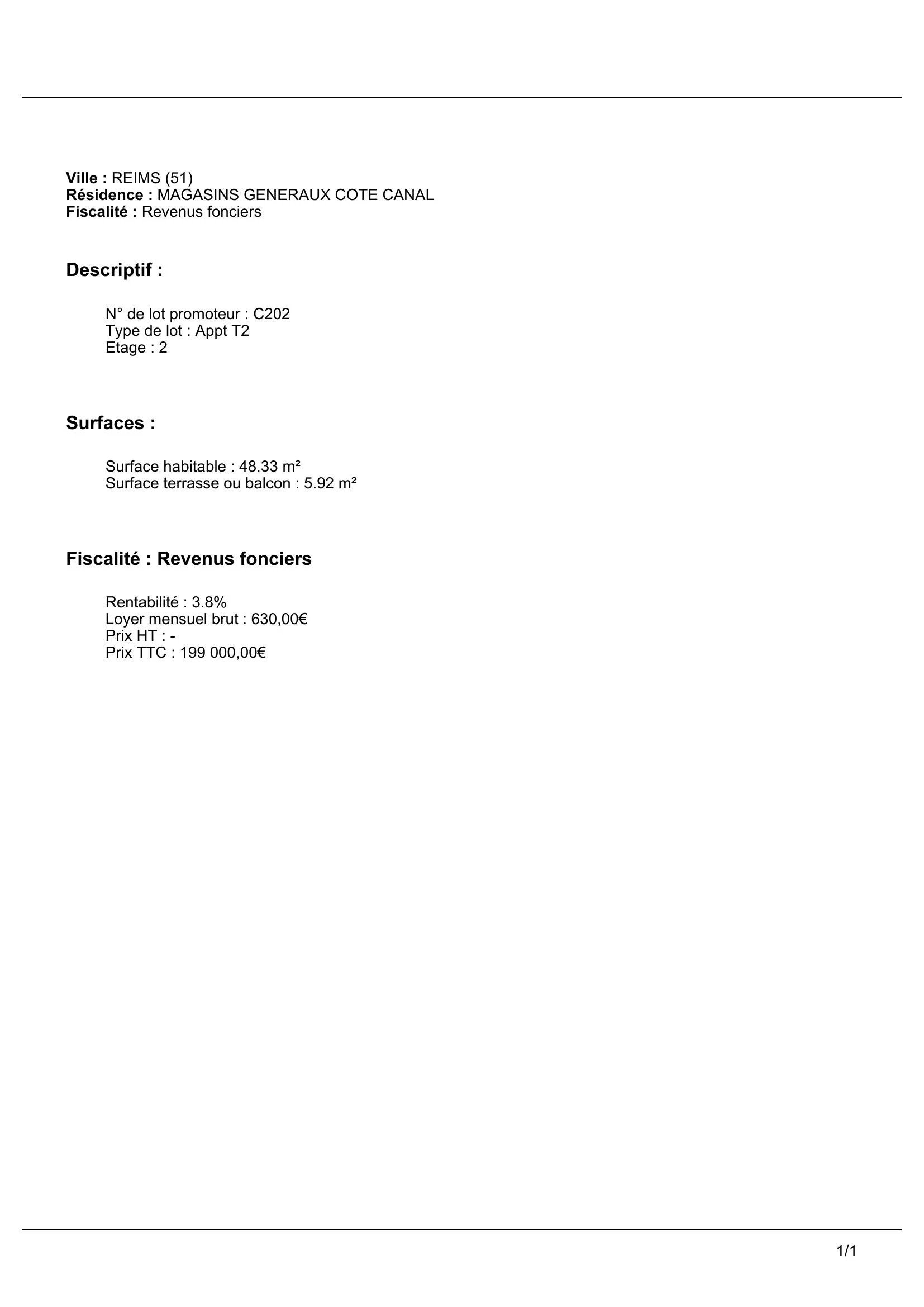 Découvrez cet appartement T2 moderne situé à Reims, offrant une surface habitable de 48,33 m² idéale pour un couple ou une personne seule. La chambre spacieuse et le salon lumineux offrent un confort optimal et un agencement bien pensé. Grâce à ses aménagements contemporains, ce bien est parfait pour ceux qui cherchent à s'installer dans un cadre agréable et fonctionnel. Le point fort de cet appartement est sans doute sa terrasse, s'étendant sur 5,62 m². Parfait pour les repas en plein air ou pour profiter d'un moment de détente tout en admirant la vue sur la ville. Ce bien offre une excellente opportunité pour ceux qui désirent allier confort intérieur et espace extérieur, le tout à un prix raisonnable de 199 000 €. Enfin, situé dans un quartier en plein essor, l'appartement bénéficie de la proximité des commodités, écoles et transports en commun. La livraison est prévue pour le deuxième trimestre de 2028, une occasion à ne pas manquer pour les investisseurs ou futurs propriétaires à la recherche d'un bien moderne et stratégique.