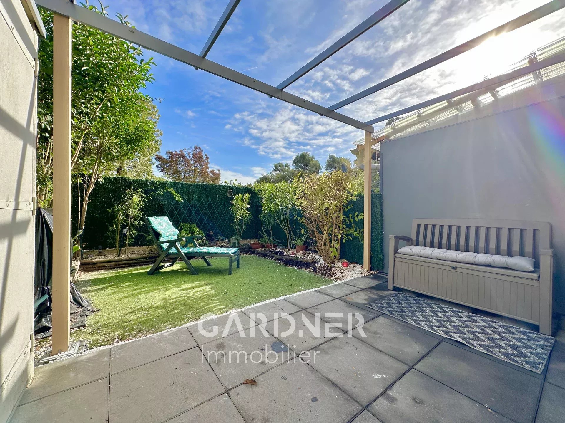 MARSEILLE 11 / VALENTINE / Dans une résidence récente de 2012, faites l’acquisition de cette maison en copropriété, mitoyenne que d’un coté. Au calme absolue, sans vis-à-vis, dans un environnement verdoyant à proximité d’une forêt protégée. La maison se compose d’une entrée avec rangement donnant sur le séjour et la cuisine totalement équipée, le tout donnant sur une terrasse et un jardin d’environ 27m2. A l’étage, 2 chambres, une salle d’eau avec WC, du rangement. Logement propre à la décoration soignée. Vendu avec cette maison, une place de parking privative. Double vitrage, climatisation réversible. La taxe foncière : 1372€. Les charges environ 85€/ mois.