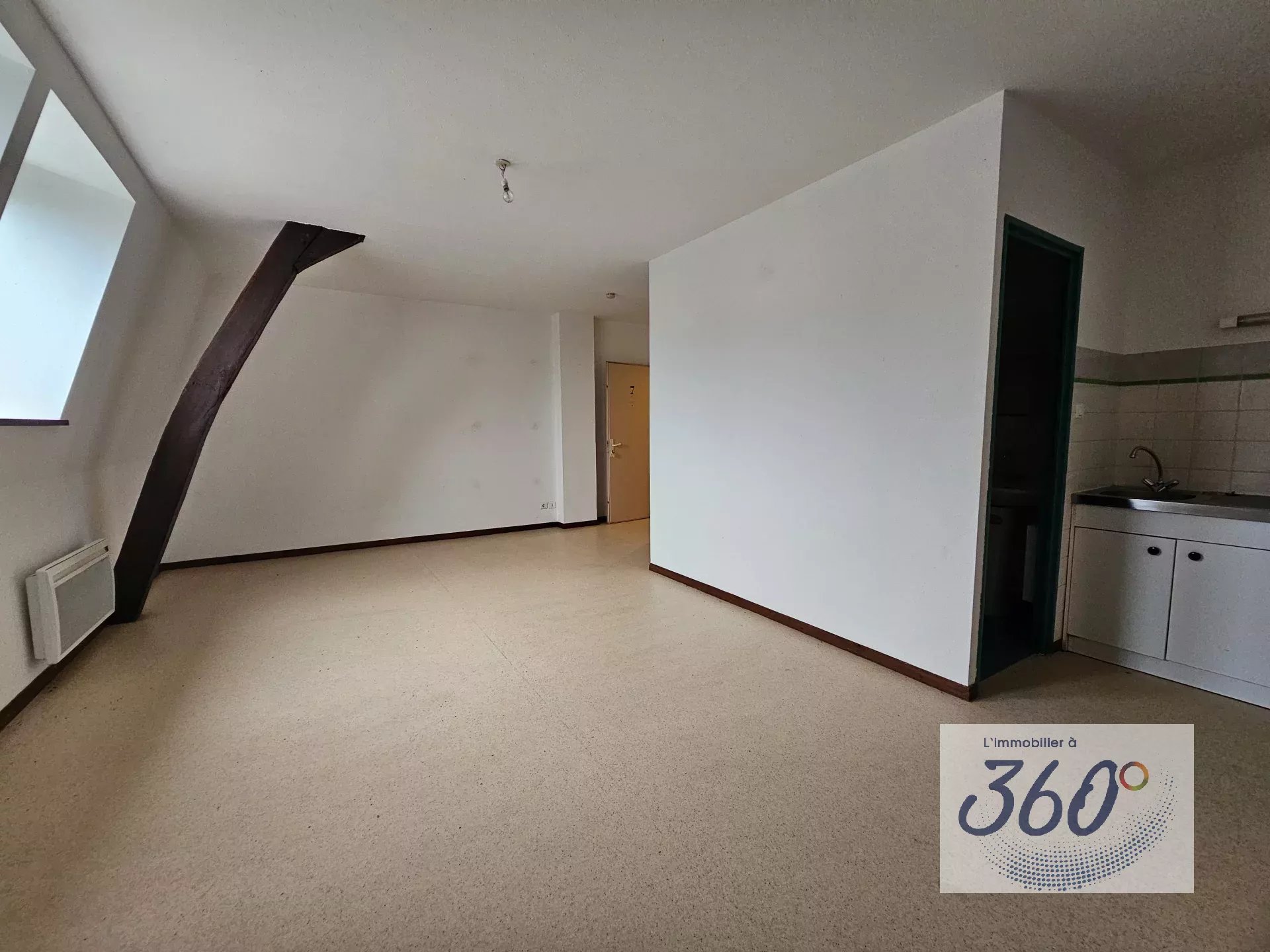 Le logement dispose d’une belle pièce de vie aux volumes confortables, bénéficiant d’une agréable luminosité, avec un coin cuisine et un placard fonctionnel. Il comprend également une salle de bain avec baignoire ainsi qu’un WC séparé. Stationnement possible au sein de la résidence.