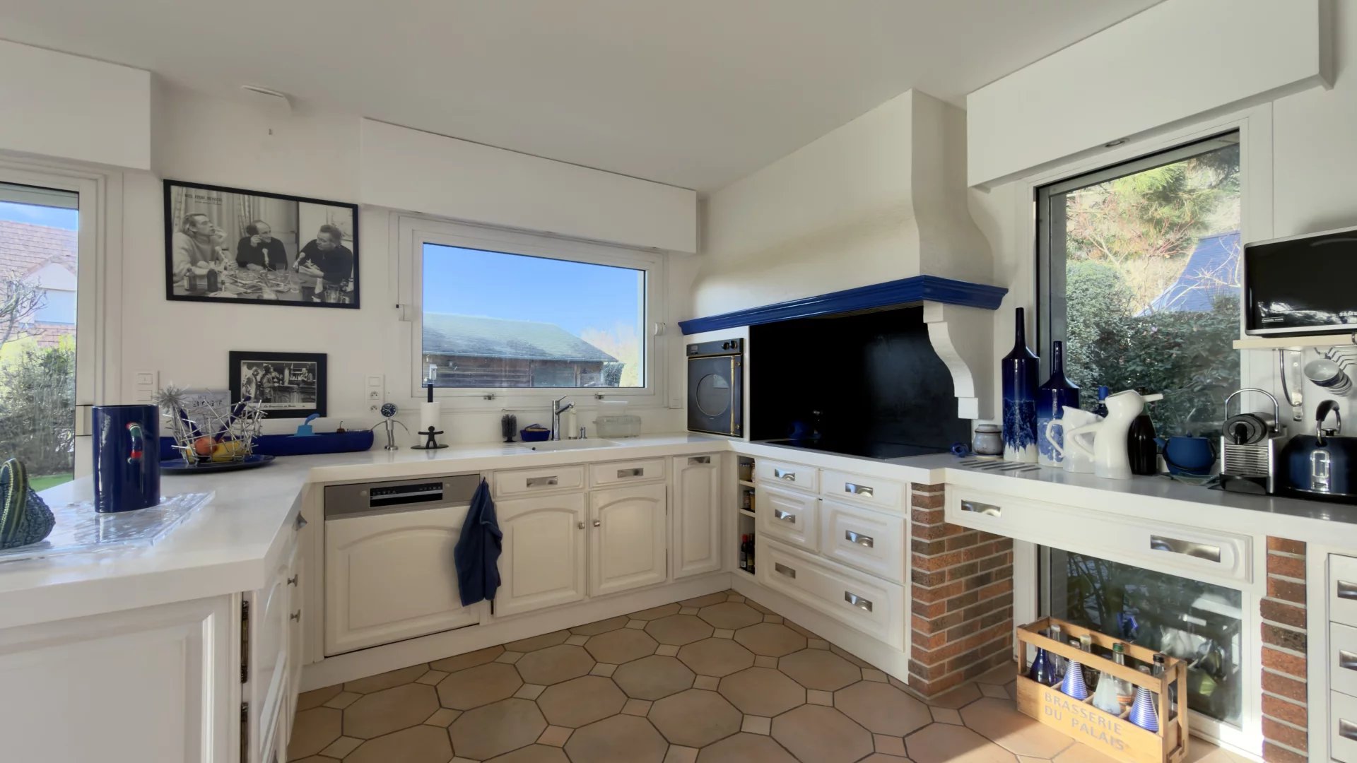 Au rez-de-chaussée, elle offre une vaste pièce de vie lumineuse grâce à sa double exposition, avec cuisine aménagée et équipée, une arrière-cuisine, une buanderie, une cave, un jardin d’hiver, un garage, ainsi que deux suites : l’une comprenant une salle de bains, un dressing et un WC, et l’autre disposant d’une salle d’eau, d’un WC et d’un dressing.