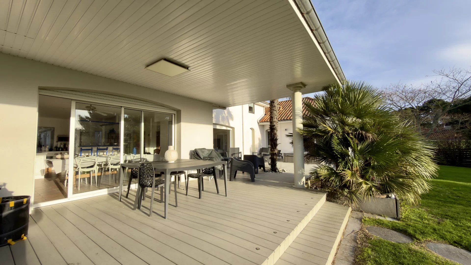 Située dans un domaine privé à environ 1 km de la plage et des commerces, cette villa parfaitement entretenue se distingue par ses volumes généreux, son agencement soigné, son accessibilité et son jardin entièrement à l’abri des regards.