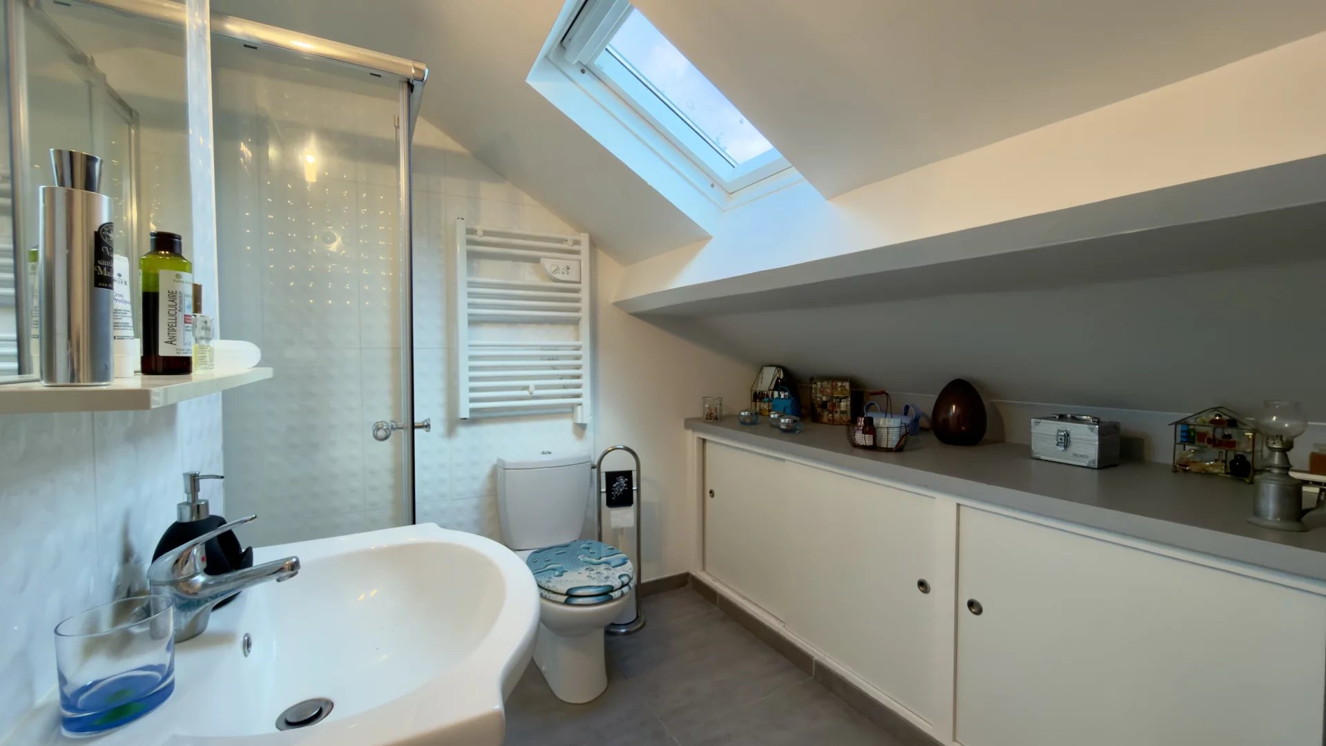 À l’étage, vous profiterez d’un espace mezzanine, d’une suite parentale avec salle d’eau et WC privatifs, ainsi que d’un dortoir doté également de sa propre salle d’eau avec WC. Ce dernier bénéficie, si besoin, d’un accès indépendant.