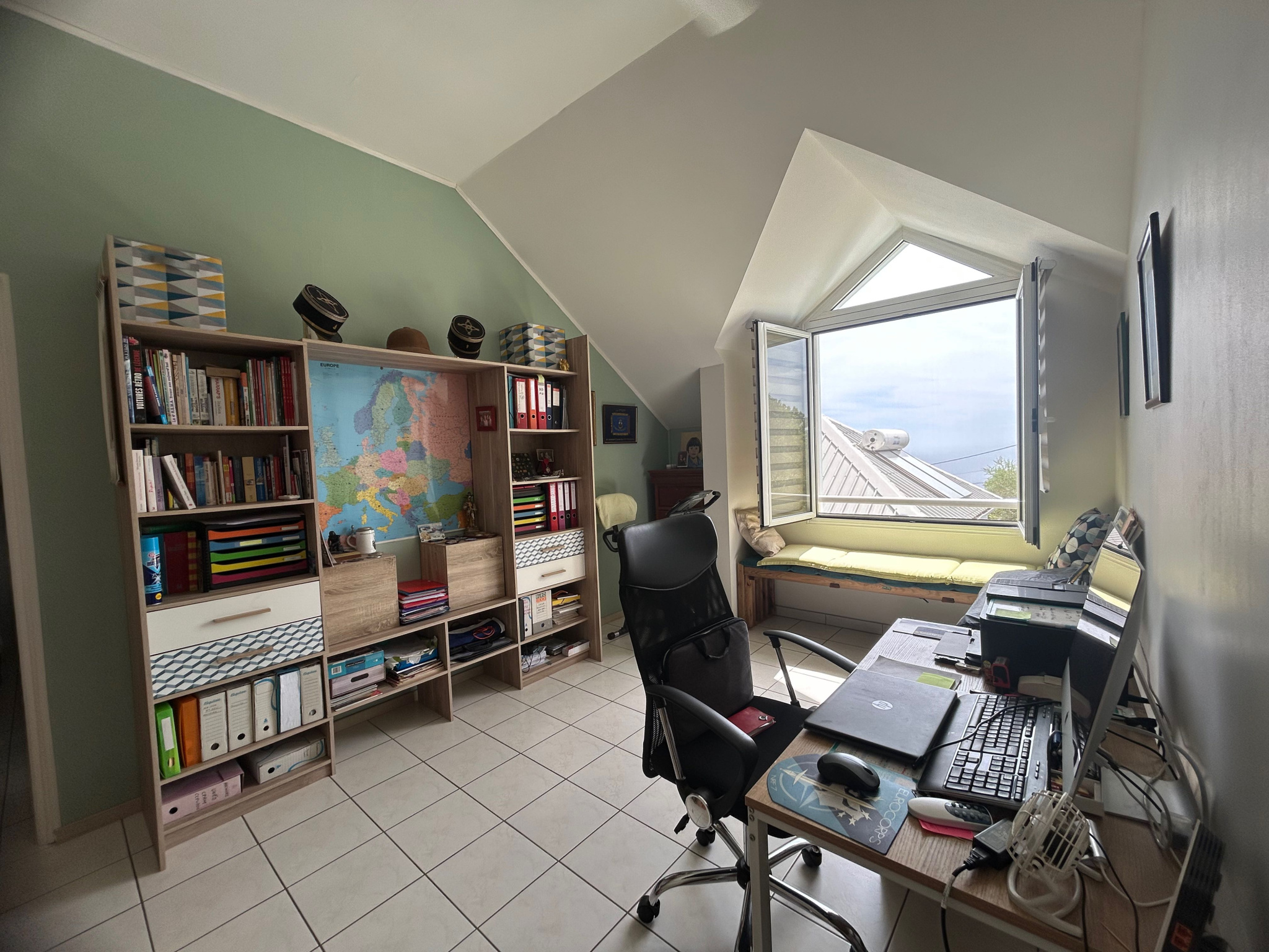 A l'étage vous trouverez 2 belles chambres séparées par un espace bureau, une salle d'eau, un wc.