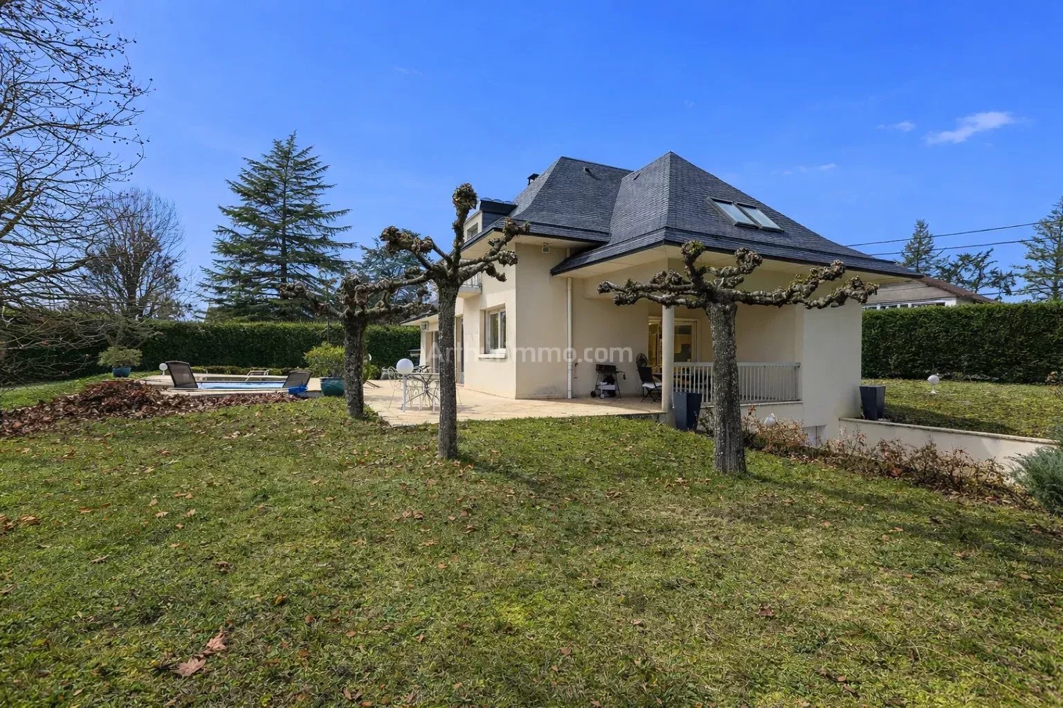Cette maison bourgeoise avec piscine est située sur les hauteurs de Saint-Clair-de-la-Tour et développe 175 m² habitables sur un terrain clos et arboré de plus de 2 700 m², dans un environnement résidentiel calme. Les +: DPE : C Menuiseries double vitrage Chauffage PAC air/eau et électrique Eau chaude sanitaire par PAC Panneaux photovoltaïques Climatisation au rez-de-chaussée Volets roulants motorisés Sous-sol/Garage Le niveau principal se compose d’une entrée desservant un salon, une salle à manger, une cuisine avec cellier/buanderie, une chambre, un WC indépendant et des espaces de rangement. À l’étage, un palier dessert trois chambres, dont deux avec balcon, ainsi qu’une salle de bains avec douche, un WC indépendant, un dressing et un bureau. La maison dispose d’un sous-sol complet comprenant un garage, une cave, un atelier ainsi qu’un espace technique dédié à la piscine. Assainissement individuel Mandat exclusif n°7102. Prix : 452 400 € - Honoraires charge acquéreur 17 400 € TTC (4% du prix de vente), prix hors honoraires : 435 000 €. Visite virtuelle et vidéo sur notre site Arthurimmo Morestel Les informations sur les risques auxquels ce bien est exposé sont disponibles sur le site Géorisques : georisques.gouv.fr