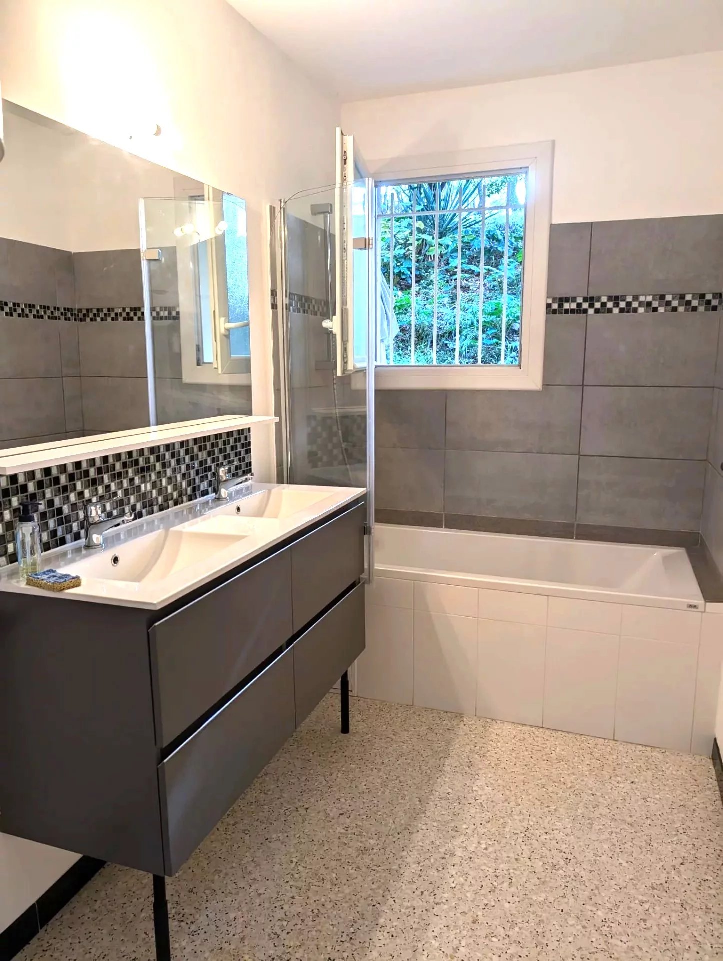 Dans résidence calme, appartement F3 en rez-de-chaussée surélevé, séjour, cuisine avec balcon, deux chambres, salle de bains toilettes indépendantes, vendu avec un garage!