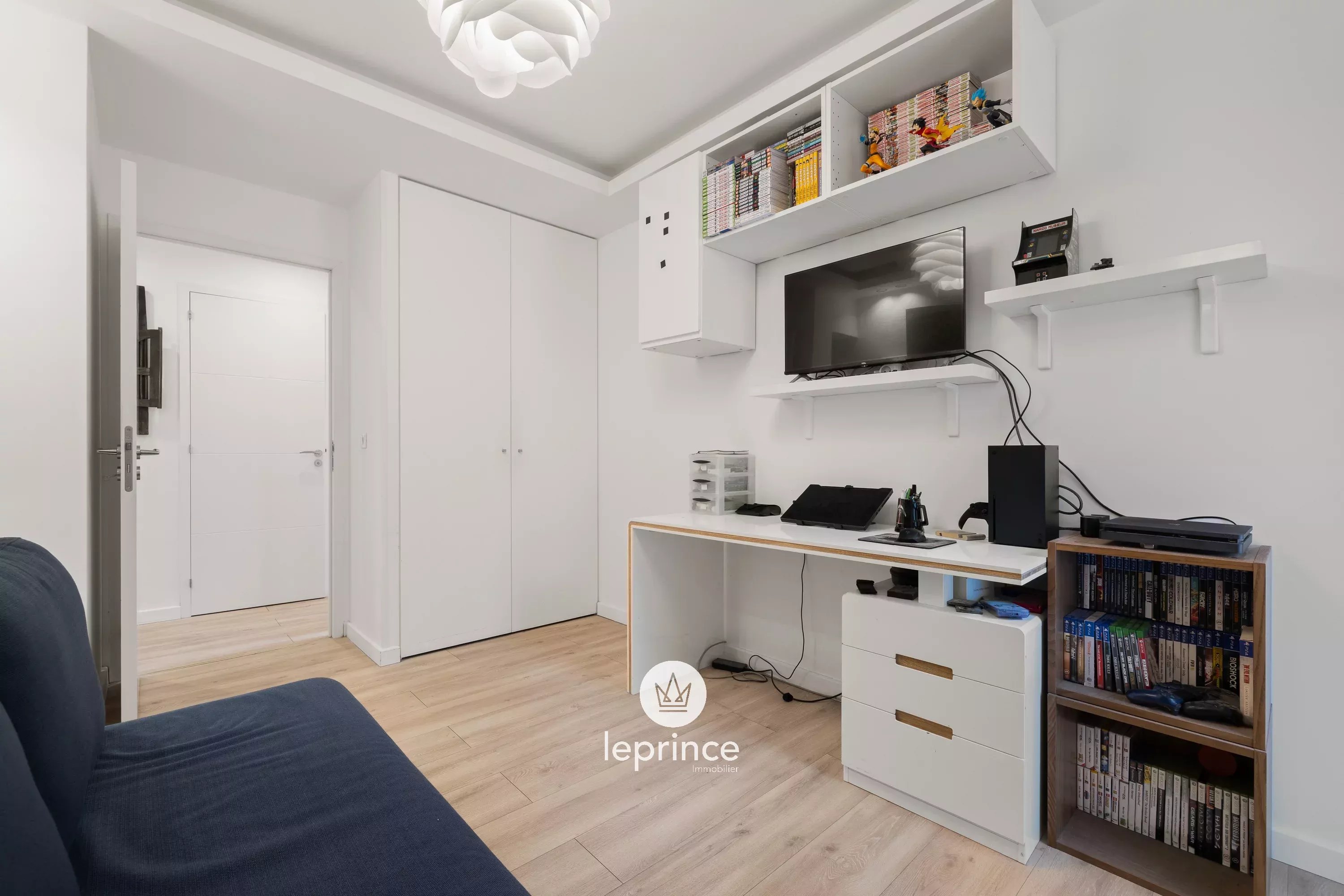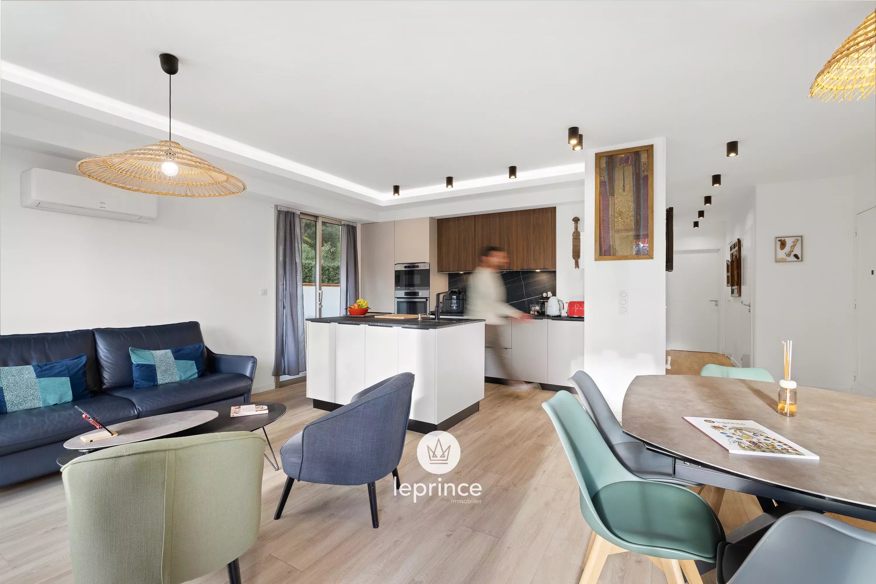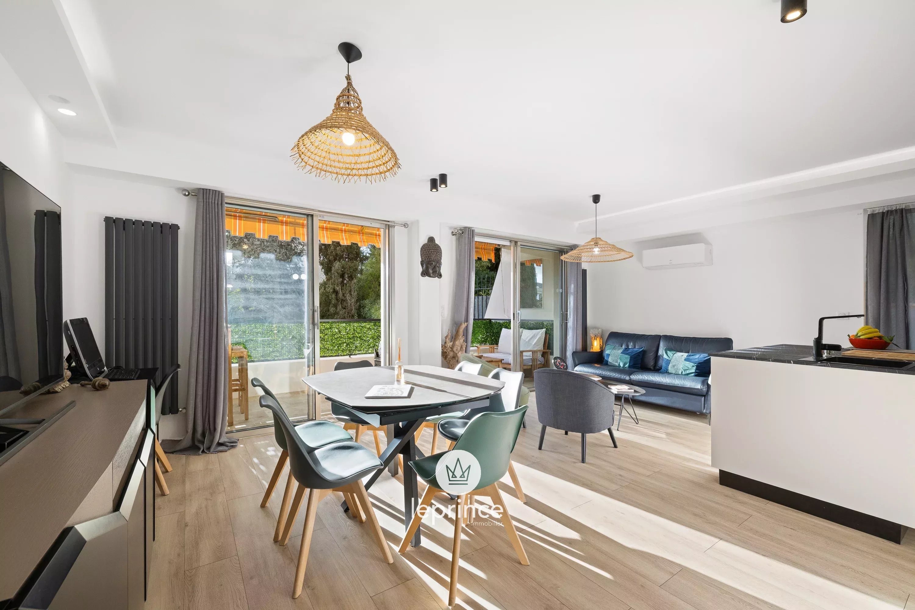 Si compone di un ingresso con armadi a muro, che si apre su un soggiorno luminoso, prolungato da una terrazza di 12 m² con vista mare.