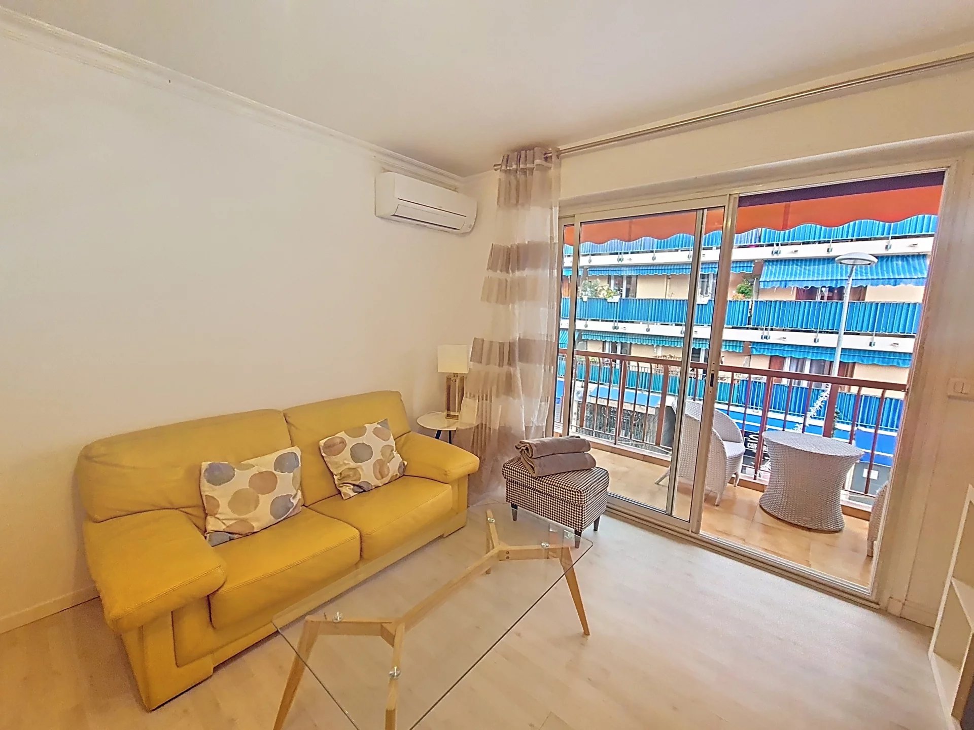 L’appartement offre un séjour agréable, une cuisine fermée, deux chambres, chacune agrémentées de grands placards, une salle de douche, un toilette indépendant ainsi qu’un dressing fermé, offrant un espace supplémentaire très appréciable de rangement. Une terrasse permet de profiter des beaux jours, tandis que la climatisation réversible assure un confort optimal en été comme en hiver. Une cave vient compléter ce bien.