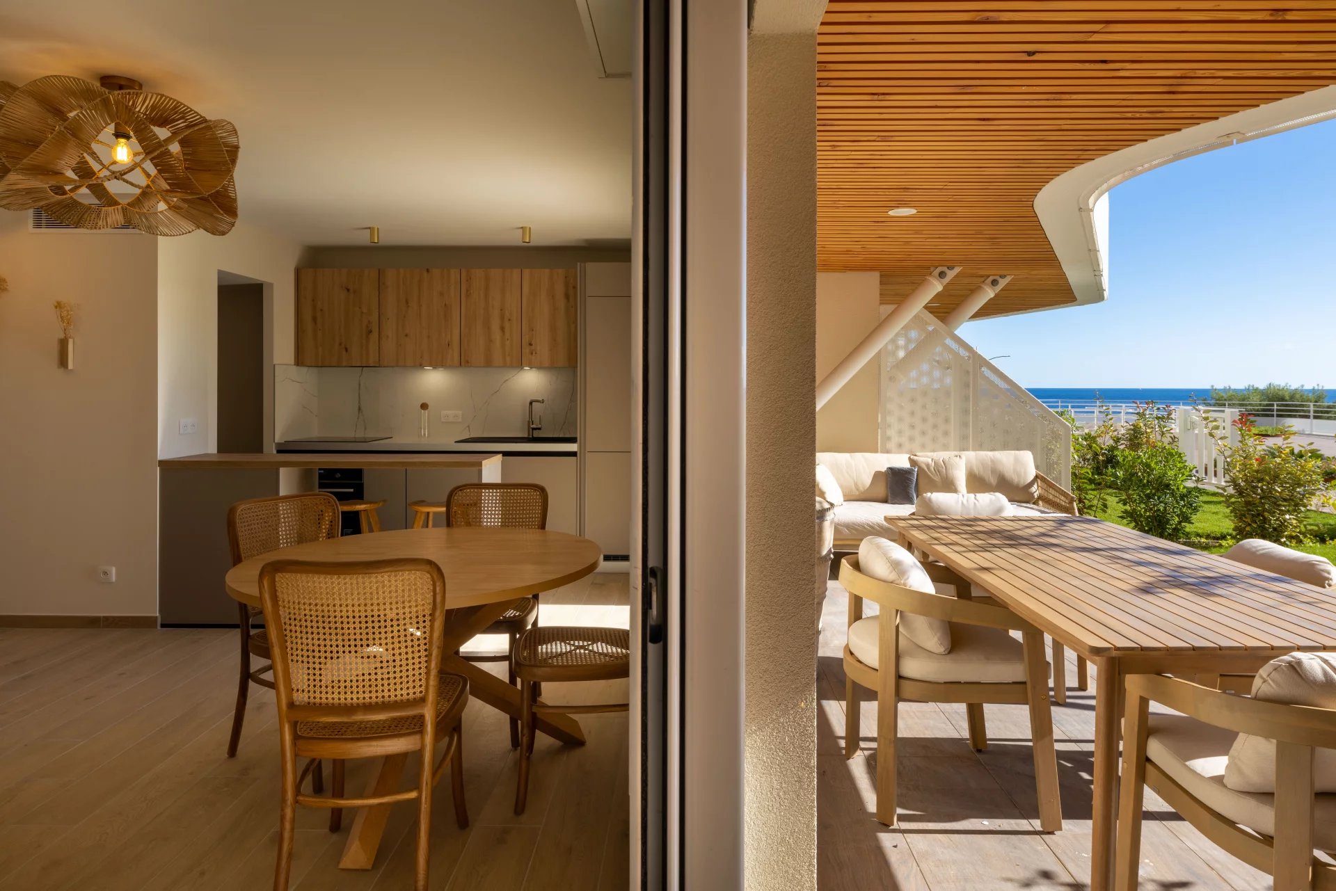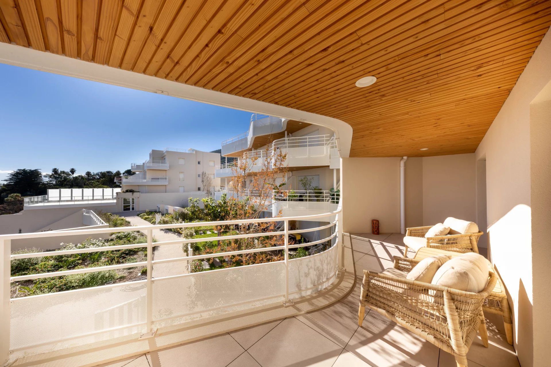 Dans une résidence gardiennée et sécurisée pied-dans-l'eau au Trayas, Appartement 2/3 Pièces de 60,50 m² vue mer offrant de beaux volumes. La modernité s'invite dès l'entrée une entrée, avec des toilettes, une cuisine américaine et un séjour avec une belle terrasse. Cellier. A l'étage, un carré de liberté pour un bureau ou une chambre d'appoint puis la chambre de Maître avec dressing, balcon. Salle de douche, toilettes. Un parking privatif. Tennis. Piscine. Plage à proximité.