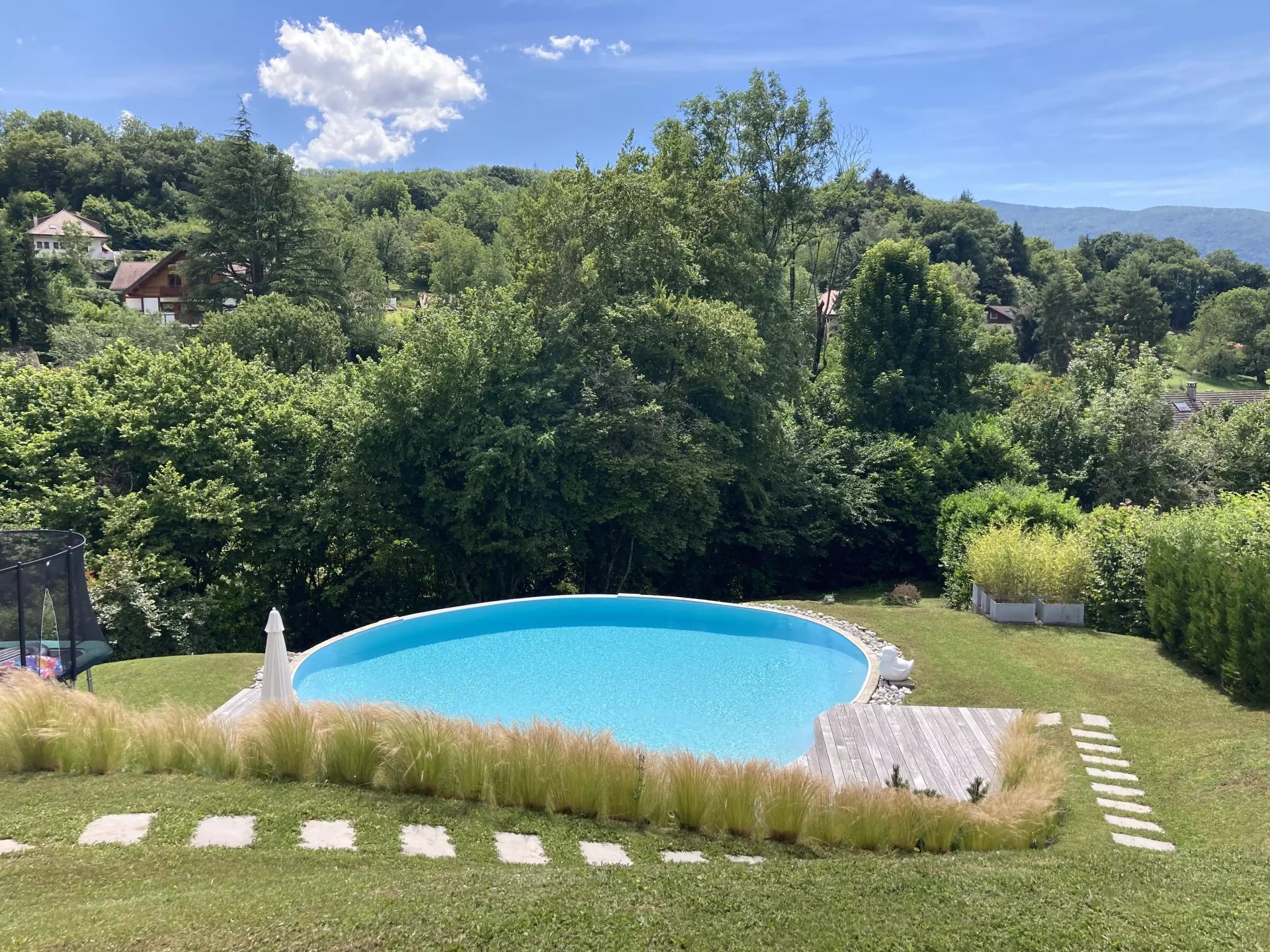 Superbe villa de 200 m² conçue par un architecte, sur un terrain de 1 800 m² exposé sud/sud-ouest et offrant une vue magnifique sur le lac d'Annecy. Salon lumineux en duplex, cuisine Poliform, double salon. 5 chambres dont 2 suites parentales, bureau, buanderie, cave. Équipements haut de gamme : 3 salles de bains, pompe à chaleur air-eau, chauffe-eau thermodynamique, stores solaires réglables, matériaux de qualité. Extérieur : piscine à débordement d'eau salée, double abri voiture, garage de rangement supplémentaire de 20 m². Commerces et services à 5 min à pied ; lac et golf à 10 min à pied. Annecy à 8 km, aéroport de Genève à 50 km. Traduit avec DeepL.com (version gratuite)