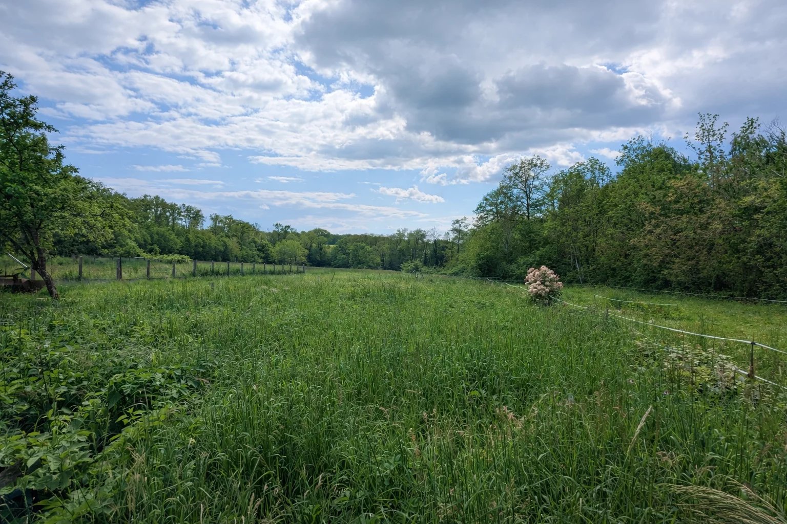 Le terrain, entièrement plat, bénéficie d’une grange indépendante située à l’avant de la propriété.