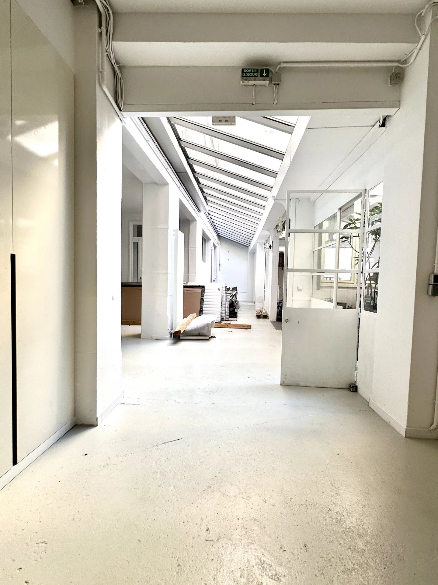 Superficie totale 716m2. La proprietà è composta da un'ampia varietà di spazi con molto carattere: Un lussuoso edificio del XIX secolo con accesso tramite una magnifica scala in pietra a un ampio cortile pavimentato sul lato del Tempio. 2 grandi spazi sotto tetti di vetro con soffitti alti fino a 5 metri, uffici con pavimenti in cemento o vecchio parquet. Due grandi cantine a volta completano questo edificio insolito nella zona. Superficie del cortile 600 m2, superficie del seminterrato 130 m2 (soffitti alti 4 metri), superficie del giardino interno 15 m2. Essendo a cavallo di due comproprietà, questa proprietà è divisibile e ha due ingressi con indirizzi separati.