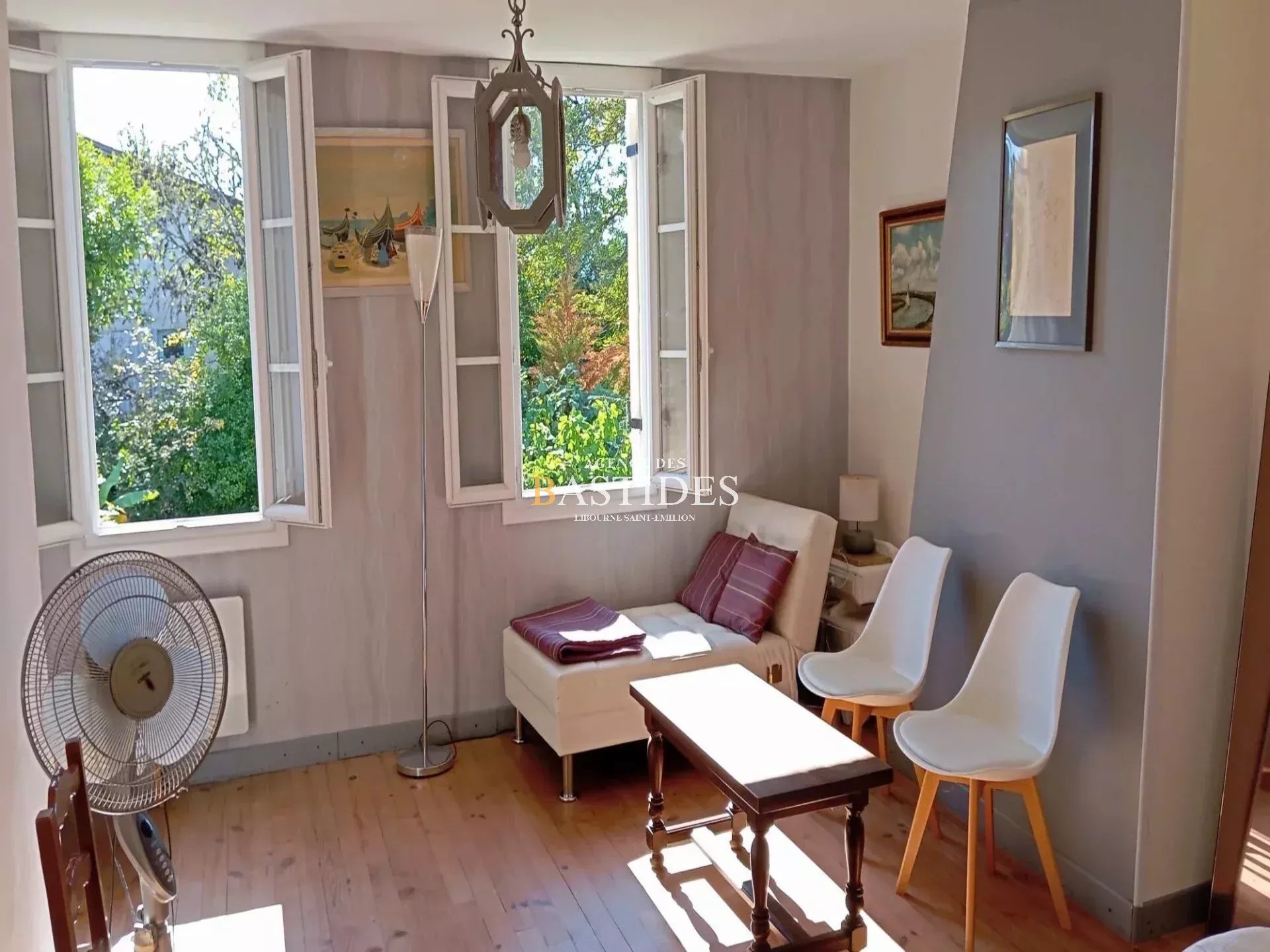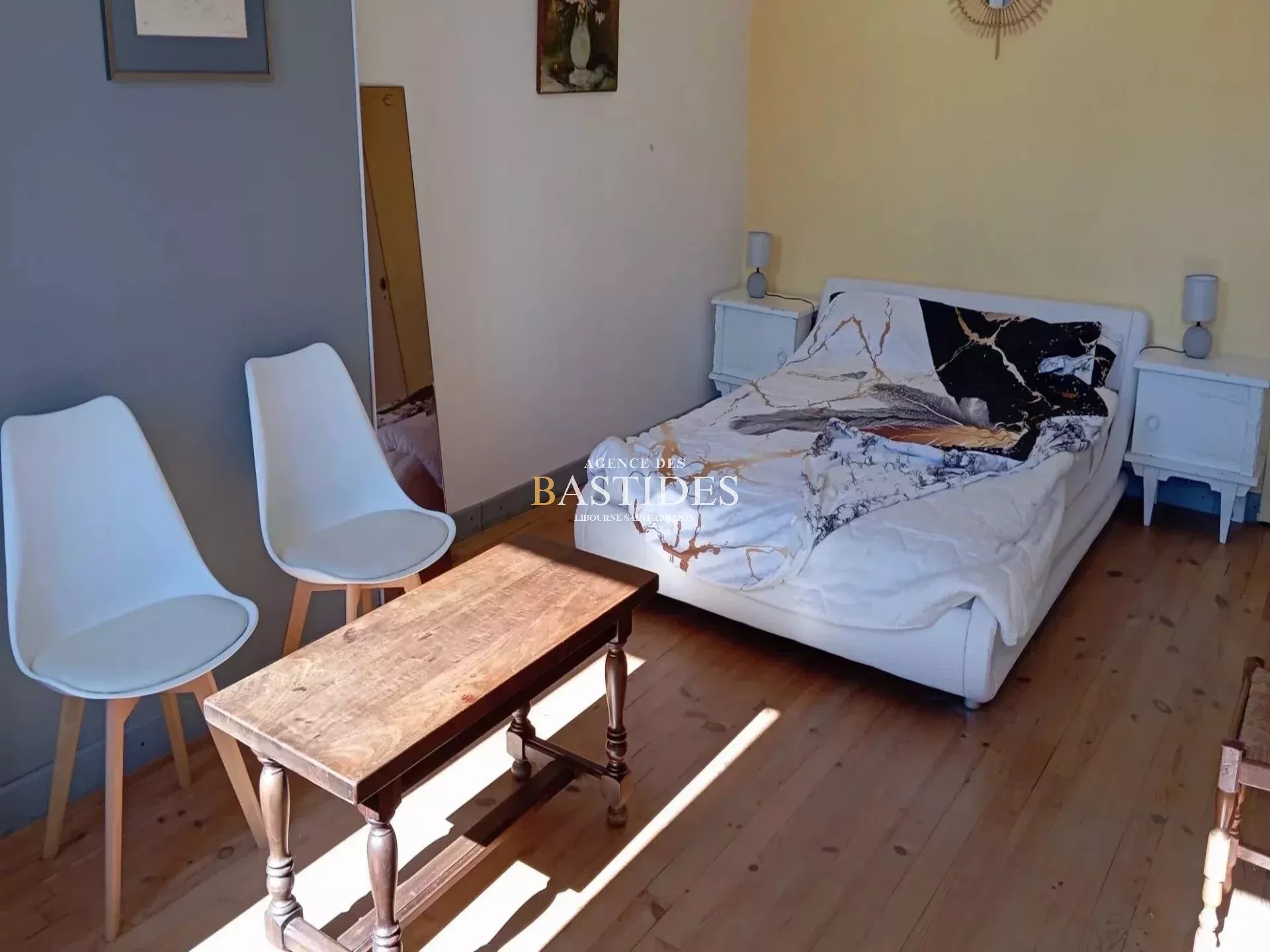 Dans un village à 5 minutes de Coutras, laissez vous séduire par cette jolie maison en pierre qui a gardé de son authenticité, pierre de taille apparente, parquet massif, poutres, cheminée. La maison principale comprend une cuisine, une entrée, un séjour et 3 chambres à l'étage dont une suite parentale ( chambre, salle d'eau, wc séparé, dressing + grenier ), et une autre salle d'eau à l'étage. 2 logements indépendants style studio de plain pied peuvent être loué pour profiter d'un revenu locatif ou bien héberger un membre de sa famille en toute autonomie, il y a également la possibilité de réunir ces 2 logements pour en faire 1 seul ou bien les rattacher à la maison principale. Terrain clôturé d'environ 1700 m2, avec piscine et un chalet de 17m2 climatisé entièrement équipé pouvant être loué également. 2 Abris jardin complètent cet ensemble