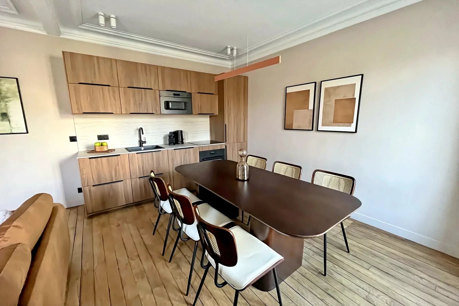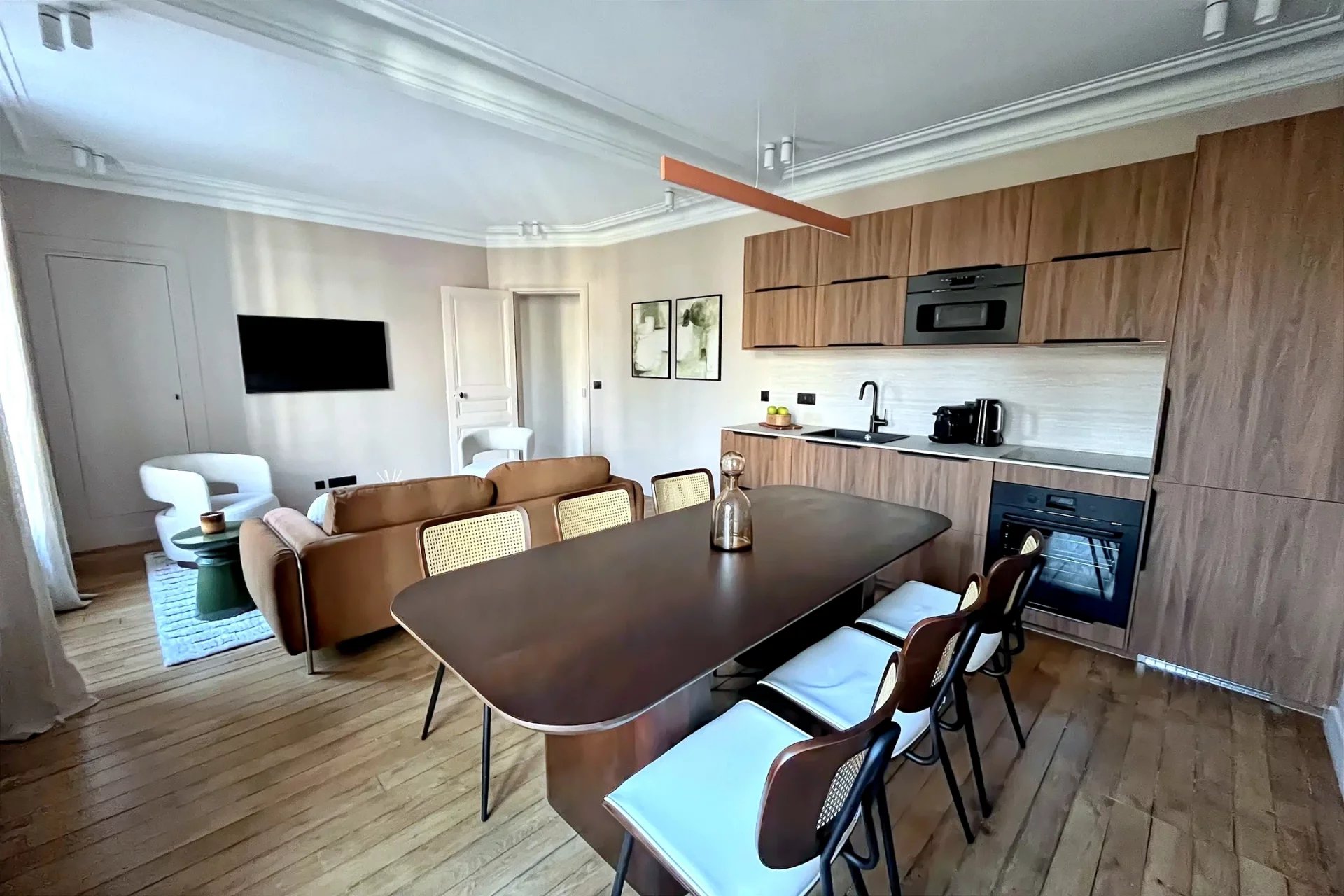 Au 2ᵉ étage d’un immeuble ancien, cet appartement meublé de 85 m², entièrement rénové, conjugue avec élégance le charme de l’ancien et des prestations contemporaines.
