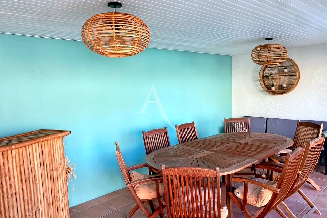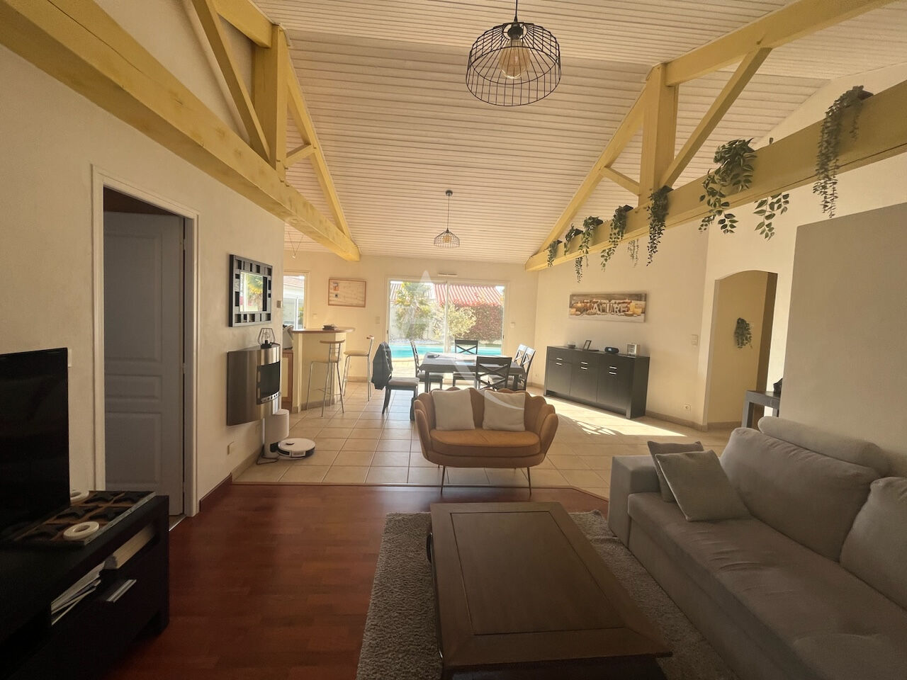 Idéalement située aux fosses rouges, à seulement 1,5 km de la mer et à proximité immédiate des commerces, cette maison de 2002 offre un cadre de vie privilégié. Sans vis-à-vis, elle garantit intimité et tranquillité. Caractéristiques principales : Intérieur : Une grande pièce de vie lumineuse avec cuisine ouverte équipée et aménagée, trois chambres spacieuses, un bureau, et une salle de bain avec douche et baignoire. Confort : Une salle d'eau avec WC près de la piscine, un garage, un cellier, et une pièce supplémentaire donnant sur la piscine, idéale pour des moments conviviaux. Extérieur : Un jardin sans vis-à-vis, une belle piscine chauffée avec local technique, et dans un cadre calme et sans vis à vis. Cette maison est idéale pour tout type de clientèle, alliant praticité, confort et proximité des commodités. Pour plus d'informations ou pour organiser une visite, contactez-nous !