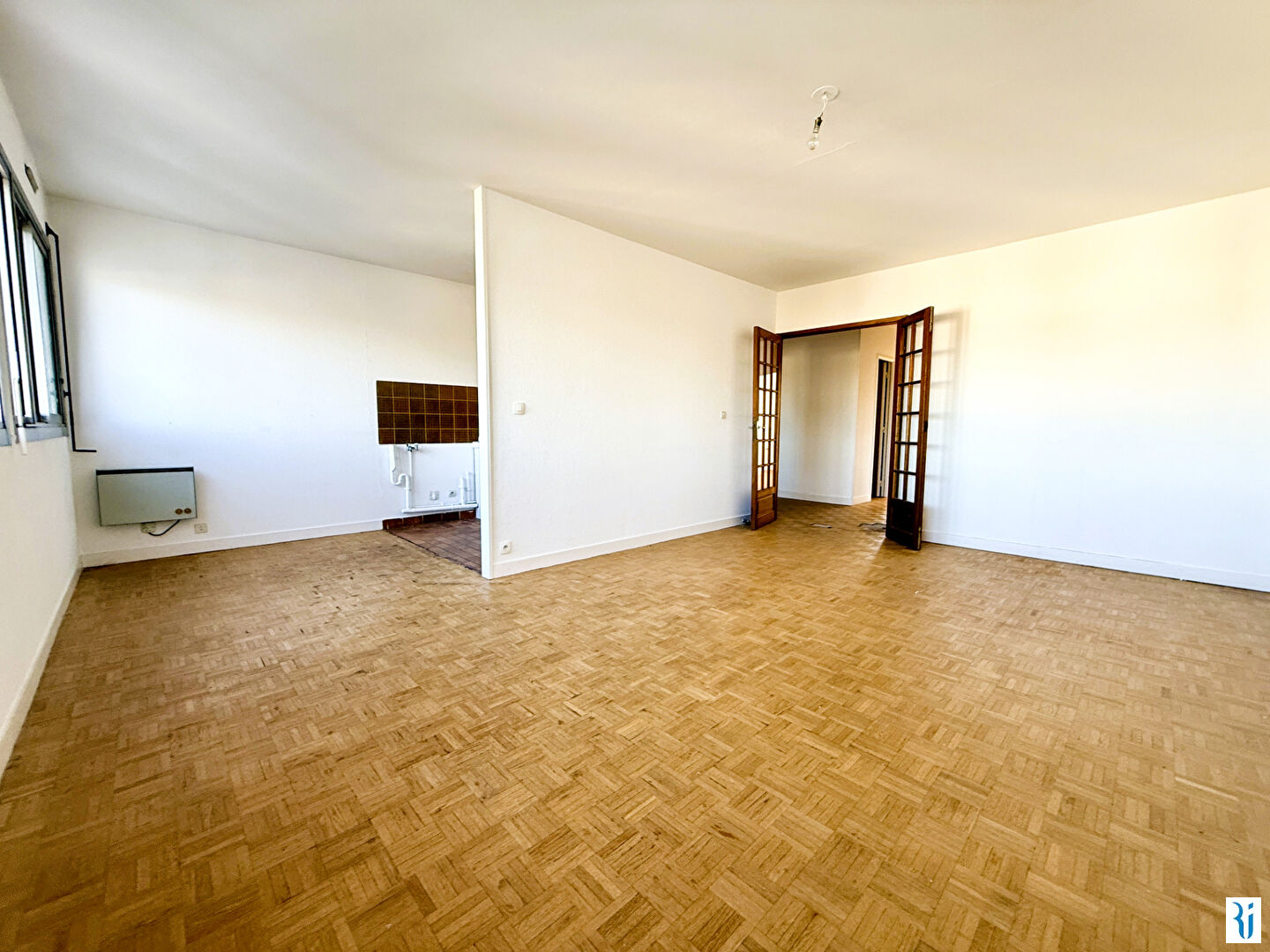 ROUEN DROITE Secteur Mairie/Saint Marc SAUVAGE TRANSACTION VOUS PROPOSE EN EXCLUSIVITE AU DERNIER ETAGE AVEC ASCENSEUR DE LA RESIDENCE "LES JARDINS DE L'HOTEL DE VILLE" UN APPARTEMENT 3 PIECES D'ENVIRON 75M² OFFRANT DES VUES IMPRENABLES AVEC SA TRIPLE EXPOSITION COMPRENANT : UNE ENTREE AVEC PLACARD, SEJOUR AVEC CUISINE SEMI-OUVERTE 32M², 2 CHAMBRES, SALLE DE BAINS, DRESSING, WC, CAVE PRECISIONS : Chauffage mixte électrique, double vitrage aluminium, gardien, DPE E, PARKING EN OPTION A 24.000 euros, prévoir rénovations, ravalement récent NOTRE INSTINCT VOUS LE CONSEILLE POUR : Sa situation hors du commun au dernier étage, les vues, la qualité de la résidence.... (5.62 % honoraires TTC à la charge de l'acquéreur.) Copropriété de 170 lots. Charges annuelles : 2980 euros.