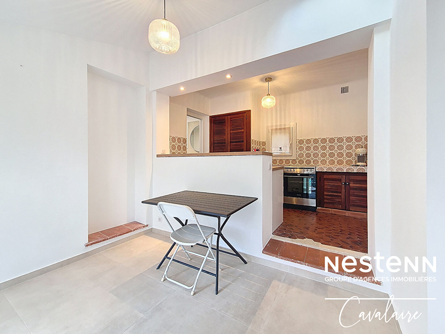 EXCLUSIVITE L'agence Nestenn Cavalaire est ravie de vous présenter à la vente cet élégant mazet d'environ 49 m² situé sur une colline très prisée à moins de 20 minutes à pied du centre-ville et des plages. Dans un environnement calme et arboré, refait intégralement à neuf, il est composé d'une terrasse à l'entrée avec un espace buanderie et rangement clos, d'un séjour traversant climatisé avec volets électriques, d'une cuisine aménagée et équipée, d'une salle à manger avec une baie vitrée tri pan, d'une salle d'eau avec WC et d'une chambre avec volets électriques. Une terrasse exposée sud est accessible des 3 pièces et bénéficie d'une pergola bioclimatique. Dans son prolongement se trouve un jardin sur un terrain plat facilement aménageable. Contactez nous dès maintenant !
