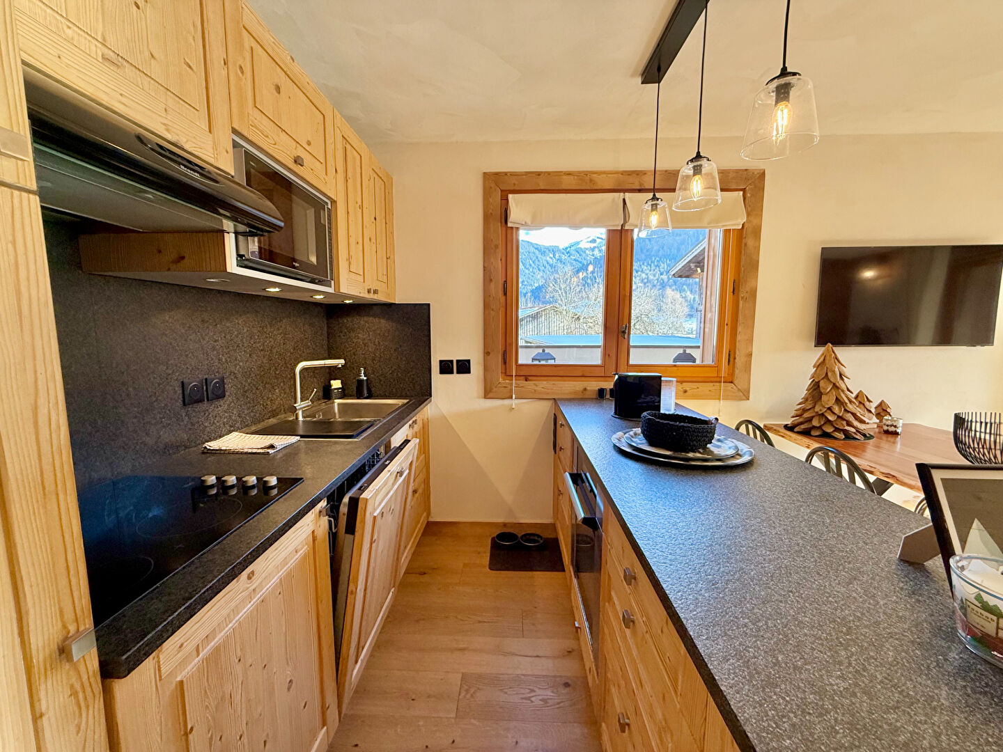Au sein d'une résidence de standing, nichée dans un environnement calme et privilégié, cet élégant appartement bénéficie d'un ensoleillement optimal et d'un emplacement recherché, à quelques pas du centre du village de Praz-sur-Arly. Il se compose de deux chambres doubles et d'une chambre enfants, offrant un agencement harmonieux et fonctionnel. La cuisine entièrement équipée est ouverte sur un séjour raffiné et convivial. Cet espace se prolonge avec lsterrasse en rez-de-jardin pour savourer pleinement du calme et de la lumière en toute saison. Une cave vient compléter ce bien. Garage disponible en option. Bien rare et coup de coeur, conjuguant prestations de qualité, luminosité et douceur de vivre, à découvrir sans tarder. (5.00 % honoraires TTC à la charge de l'acquéreur.) Copropriété de 24 lots (Pas de procédure en cours). Charges annuelles : 2300 euros.