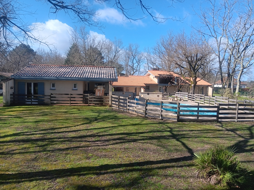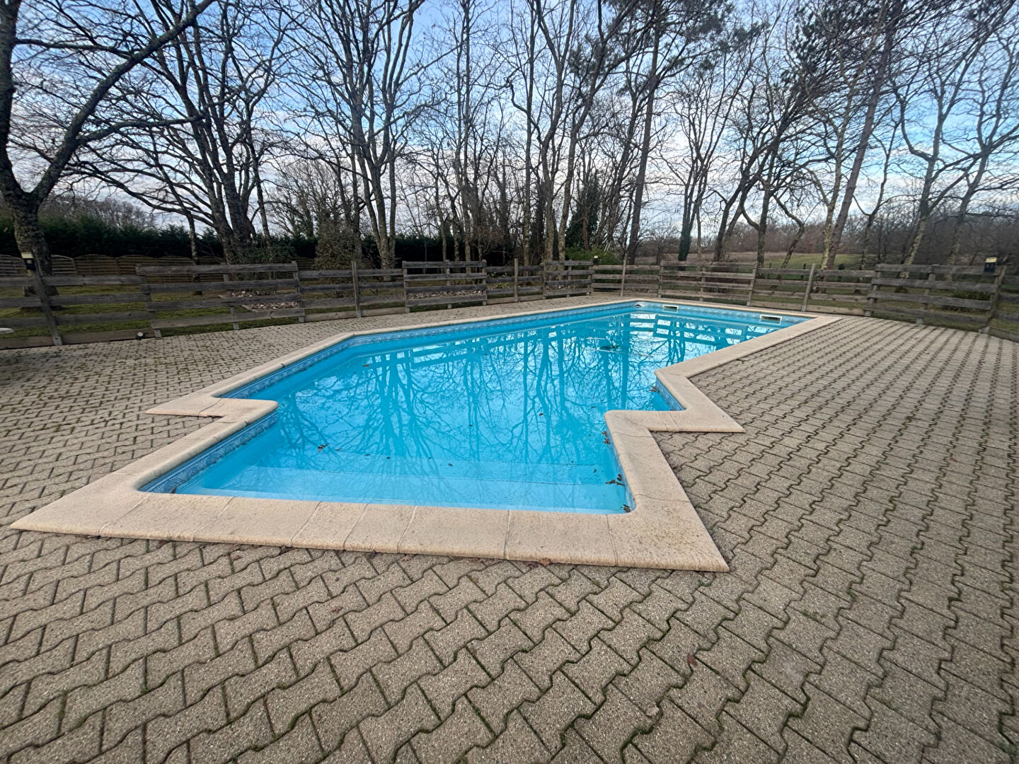 Maison d'architecte rénovée avec piscine et appartement à la campagne et proche des commodités dans un cadre calme et verdoyant. Elle se compose de plusieurs salons avec cheminée insert centrale, une cuisine entièrement équipée et une mezzanine , trois chambres avec salle d'eau privative, cellier. A l'extérieur, terrasse avec barbecue couvert, piscine 12×5 m et un appartement indépendant avec salon/cuisine et chambre avec salle d'eau. Garage et grand carport pour trois voitures. travaux récents : carrelage récent, pompe à chaleur, volets roulants et isolation et peinture sols/plafonds. (5.04 % honoraires TTC à la charge de l'acquéreur.) Mathieu BOURNET (EI) Agent Commercial - Numéro RSAC : 837739663 - Bergerac.