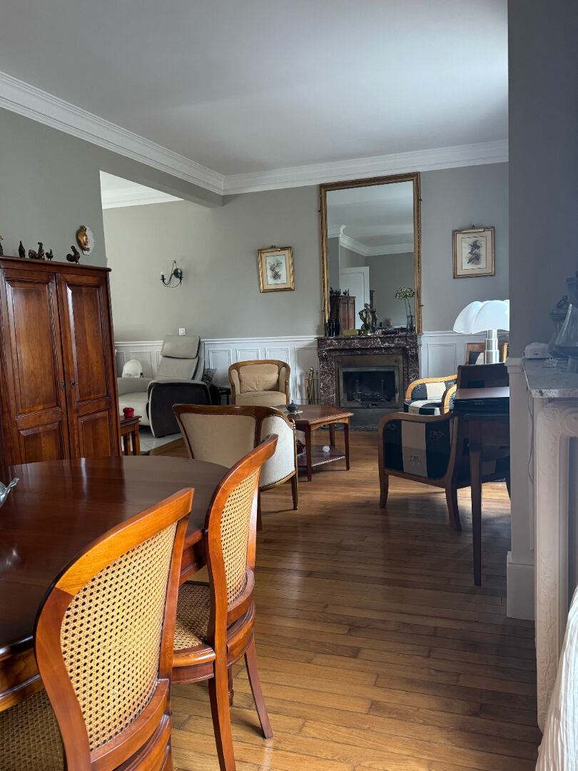 Maison bourgeoise indépendante, composée entrée, vestiaire, séjour double, salon, cheminée insert, cuisine équipée, espace repas, salle d'eau, 1er:palier desservant 3 grandes chambres, salle d'eau et wc, 2ème étage palier l2 chambres mansardées, dressings, wc, Cave compartimentée, barbecue, 2 dépendances, garage, possibilité de rentrer trois autres véhicules. Portail et porte de garage motorisés, chalet bois, Chauffage gaz de ville, double vitrage volets roulants électriques , climatisation. Terrain clos de murs sans vis à vis 630m² Charme préservé, habitable sans frais Idéalement située!!! (2.74 % honoraires TTC à la charge de l'acquéreur.)