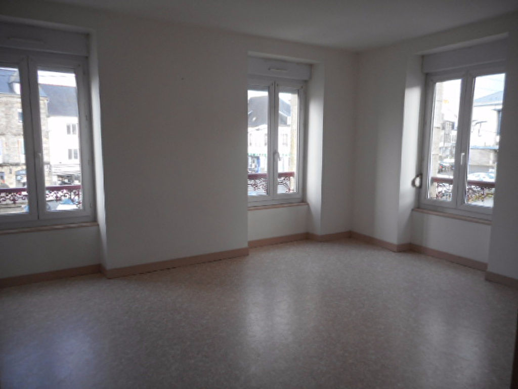 A louer plein centre de Landivisiau appartement de 55 m² au deuxième étage avec cuisine aménagée équipée d'une plaque induction et d'un petit réfrigérateur, séjour, wc, salle de bains, une grande chambre. Loyer hors charges. Charges mensuelles pour l'entretien et l'éléctricité des parties coummunes. Disponible mi-janvier.