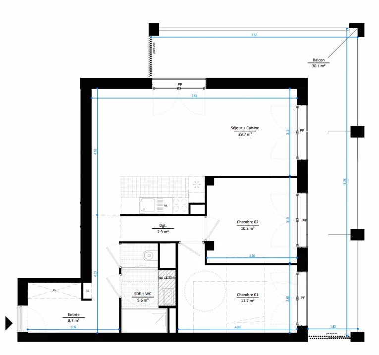 Idéalement placé, proche des commerces, écoles, et transports. Ce bien, se compose : - d'une entrée, - de deux chambres de 10 et 11m2 - d'une salle de bain, - d'un séjour/cuisine de plus de 29m2 - et d'un grand balcon de 30m2 Pour plus d'information, merci de nous contacter.