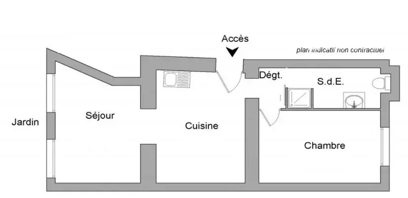 À 5 mn à pied de la gare Versailles rive gauche, au coeur du quartier St Louis, cet appartement 2 pièces de 40,46 m2 avec jardin privatif de 39 m2 se situe au rez-de chaussée d’un immeuble de 1850. Il se compose ainsi : une entrée sur cuisine aménagée et équipée, une chambre, une salle d’eau avec toilettes, un séjour ouvrant sur terrasse et jardin, une cave en sous-sol.