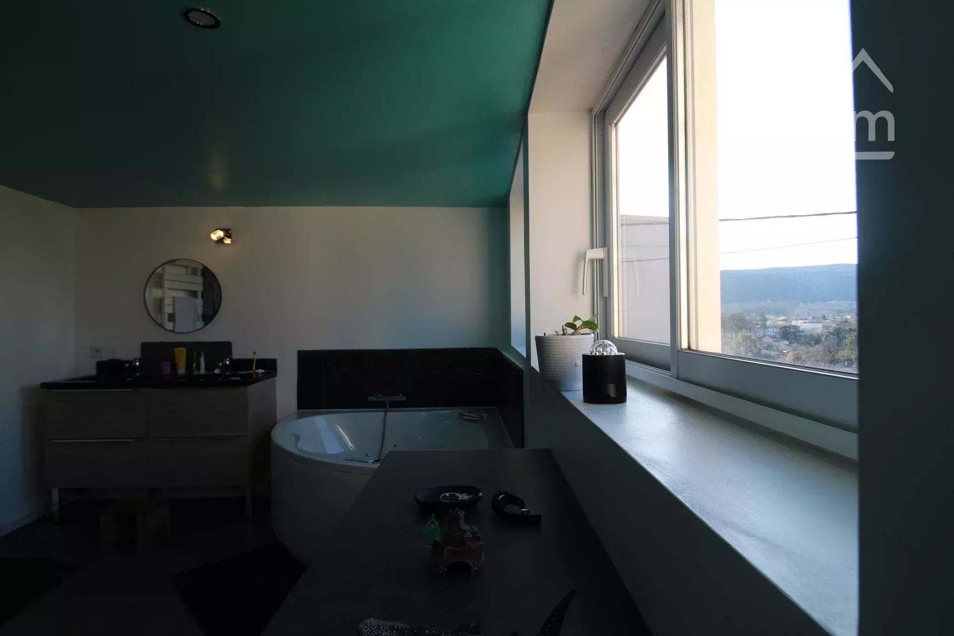 Elle offre de beaux espaces extérieurs avec une cour, une loggia et une terrasse bénéficiant d’une vue panoramique exceptionnelle sur les Pyrénées, idéales pour profiter du calme et du cadre naturel.