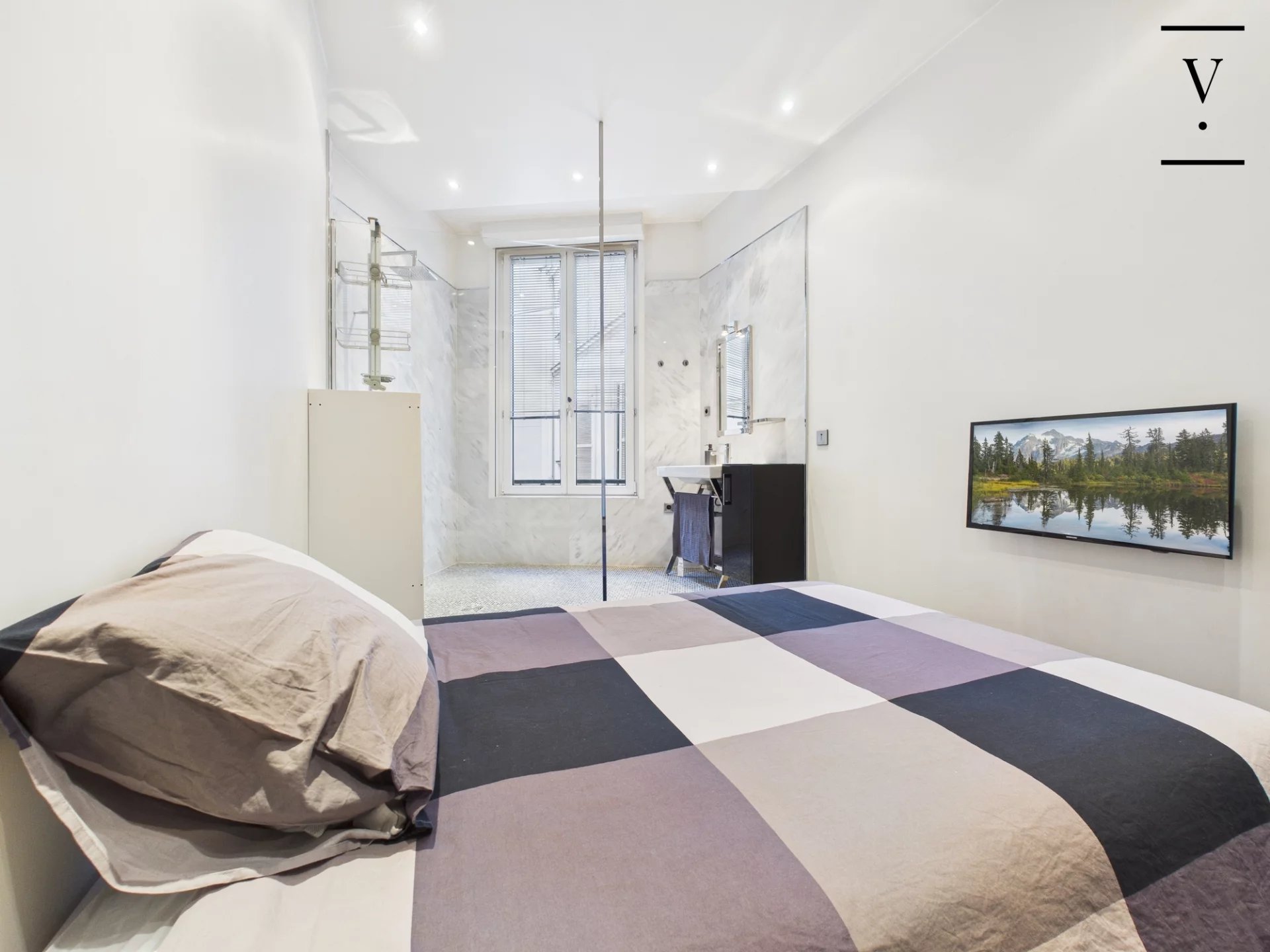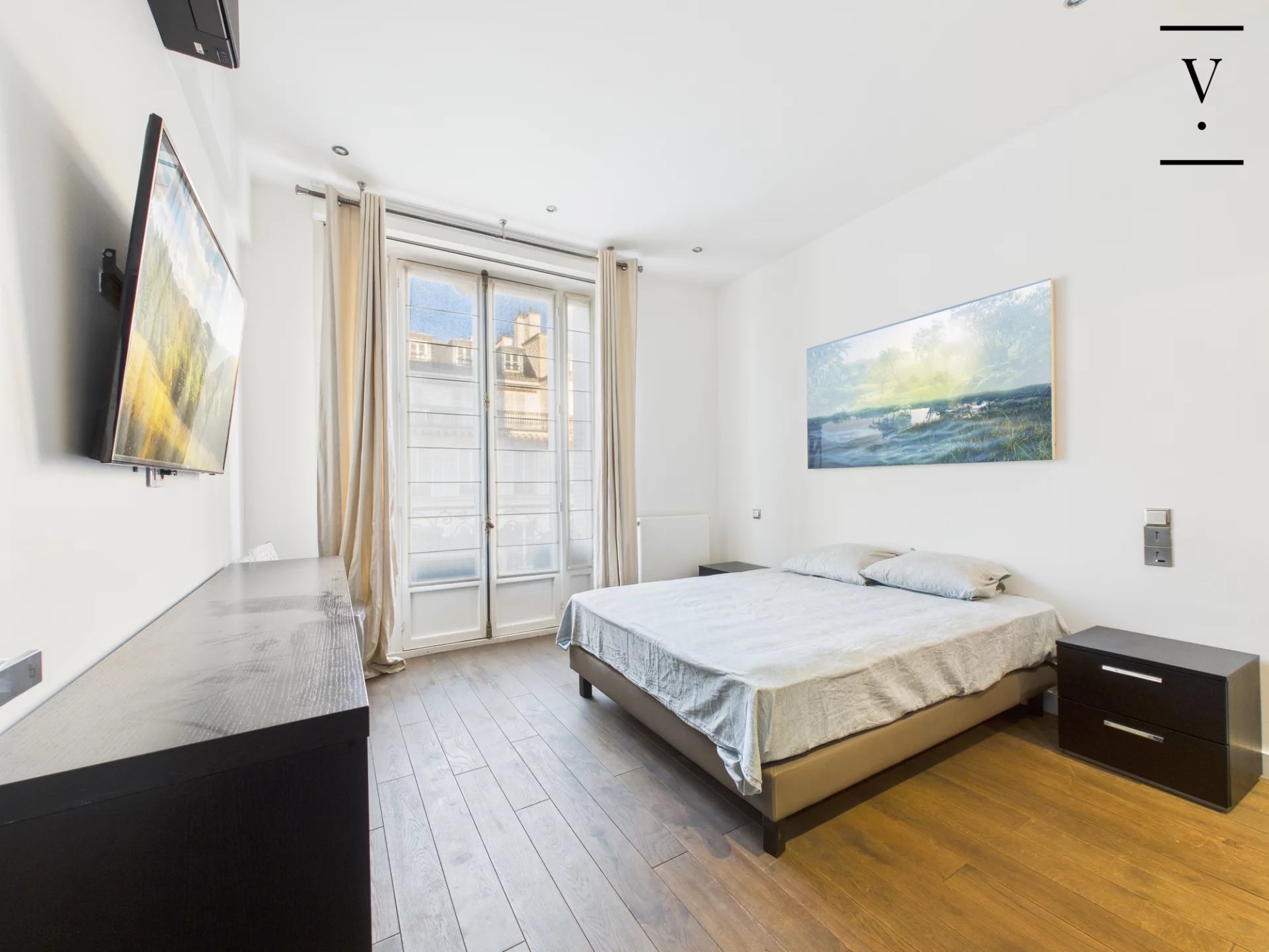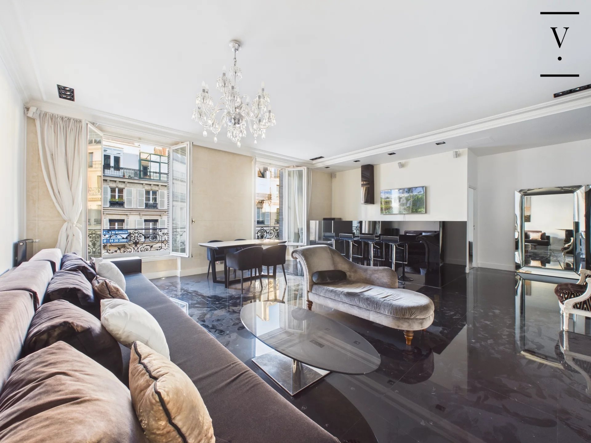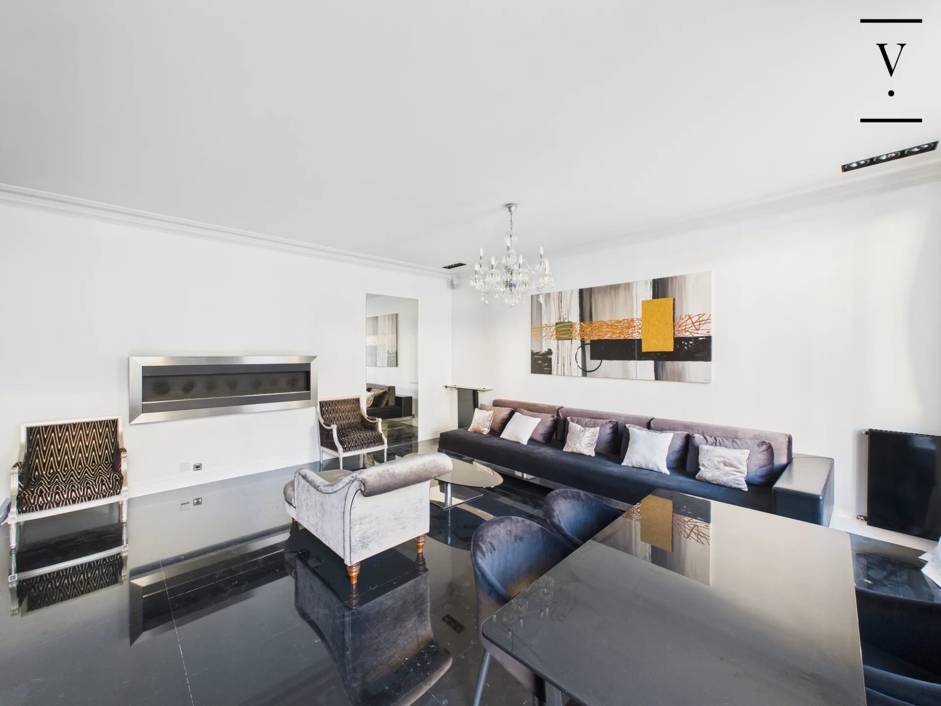 Au cœur de la très recherchée rue du Faubourg Saint-Honoré, à proximité immédiate de l’Élysée, situé au 3ᵉ étage avec ascenseur d’un superbe immeuble en pierre de taille avec gardienne, appartement meublé de 100 m². Il se compose d’une entrée, d’un vaste séjour avec cuisine américaine entièrement équipée, d’une suite parentale avec salle de bains (baignoire balnéo, douche hammam et WC), d’une seconde chambre avec salle d’eau, ainsi que de WC séparés. Climatisation, prestations haut de gamme, immeuble sécurisé avec gardienne. Idéal pied-à-terre. Bail Code civil uniquement.