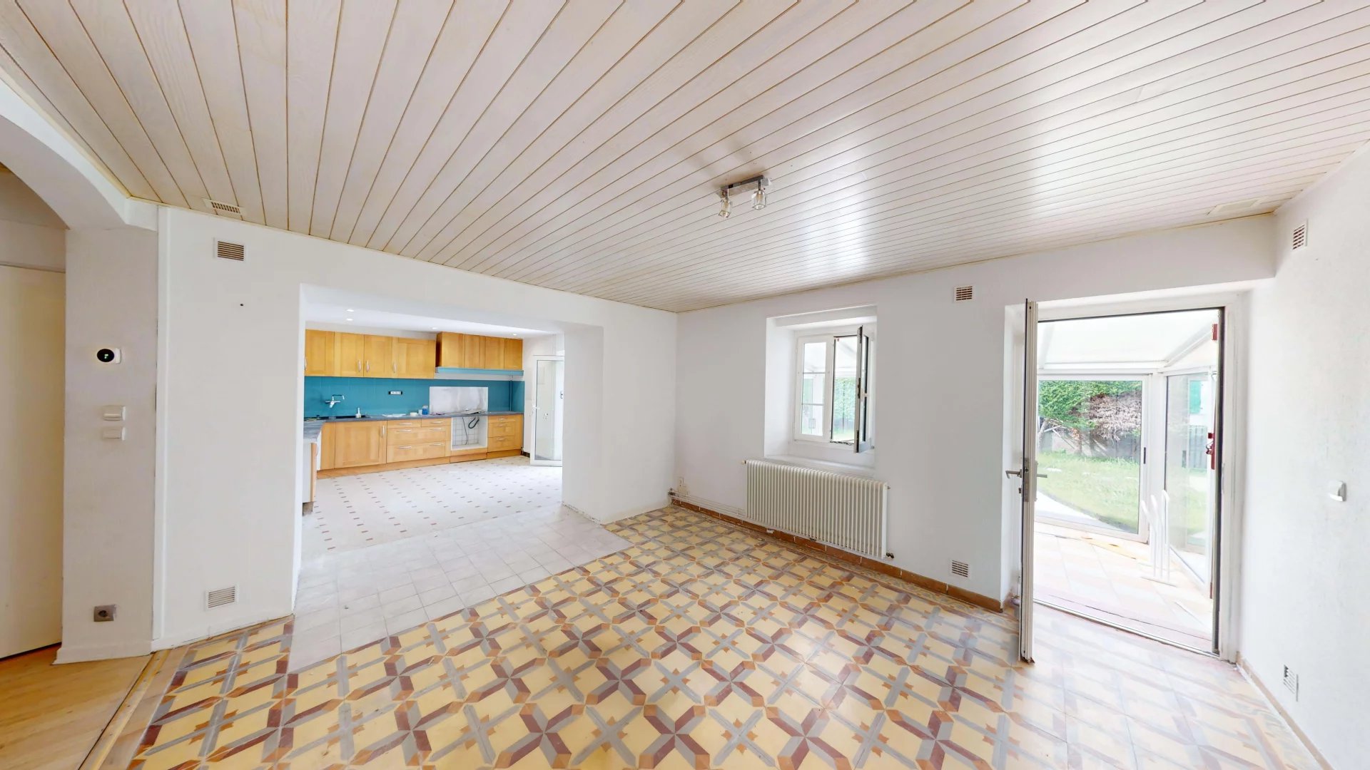 La maison se compose d’une cuisine ouverte sur un séjour spacieux, de deux chambres confortables de 11 m² et 13 m², d’une salle d’eau moderne, ainsi que d’un dégagement avec placards intégrés. La véranda apporte un espace de vie supplémentaire très appréciable, ouvert sur un jardin verdoyant.