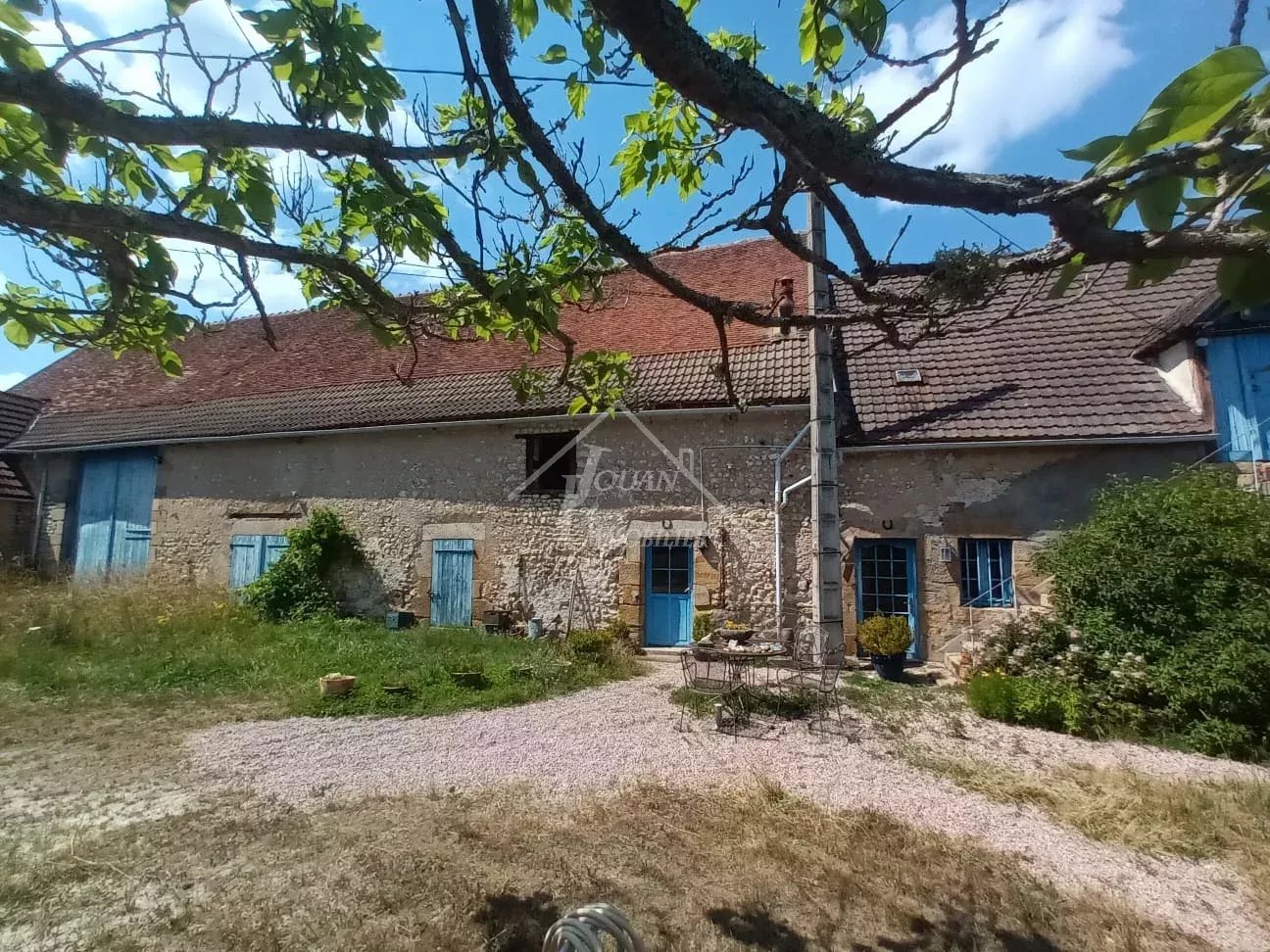 À vendre – Propriété de charme à la campagne, commune d’Agonges (Allier) À seulement 20 minutes de Moulins, 9 minutes de Bourbon-l’Archambault et 4 minutes de Saint-Menoux. Au bout d’un long chemin, nichée au cœur de la campagne bourbonnaise, se dévoile cette propriété rare, véritable havre de paix. Ici, le sentiment d’être seul au monde domine, entouré de champs et de majestueux chênes centenaires. La maison d’habitation, construite en vieilles pierres avec poutres apparentes, offre une atmosphère authentique et chaleureuse. Elle se compose : d’une grande pièce de vie agrémentée d’une imposante cheminée, d’une cuisine indépendante, de deux chambres, dont l’une avec un coin d’eau, d’une troisième pièce attenante à une chambre pouvant faire office de chambre supplémentaire, dressing ou bureau, d’un grenier non aménagé mais aménageable, mettant en valeur une magnifique charpente, offrant un beau potentiel d’agrandissement. Dans la continuité du bâtiment principal, une très grande grange divisée en plusieurs parties offre de nombreuses possibilités d’aménagement (stockage, atelier, projet agricole ou touristique). Trois autres bâtiments viennent encadrer la cour intérieure, renforçant le charme et le potentiel de l’ensemble. À l’entrée de la propriété, un vaste préau permet de stationner jusqu’à quatre véhicules. L’ensemble est implanté sur un superbe terrain d’environ 7 997 m², agrémenté d’une mare, idéal pour les amoureux de nature et de tranquillité. Informations techniques : Chauffage central au fioul (hors service), Assainissement individuel non conforme, Travaux de rafraîchissement à prévoir : plomberie, électricité, isolation, menuiseries, charpente et toiture. Un bien rare par son emplacement et son caractère de corps de ferme, une véritable petite pépite du Bocage Bourbonnais. DPE:G Les informations sur les risques auxquels ce bien est exposé sont disponibles sur le site Géorisques : www.georisques.gouv.fr