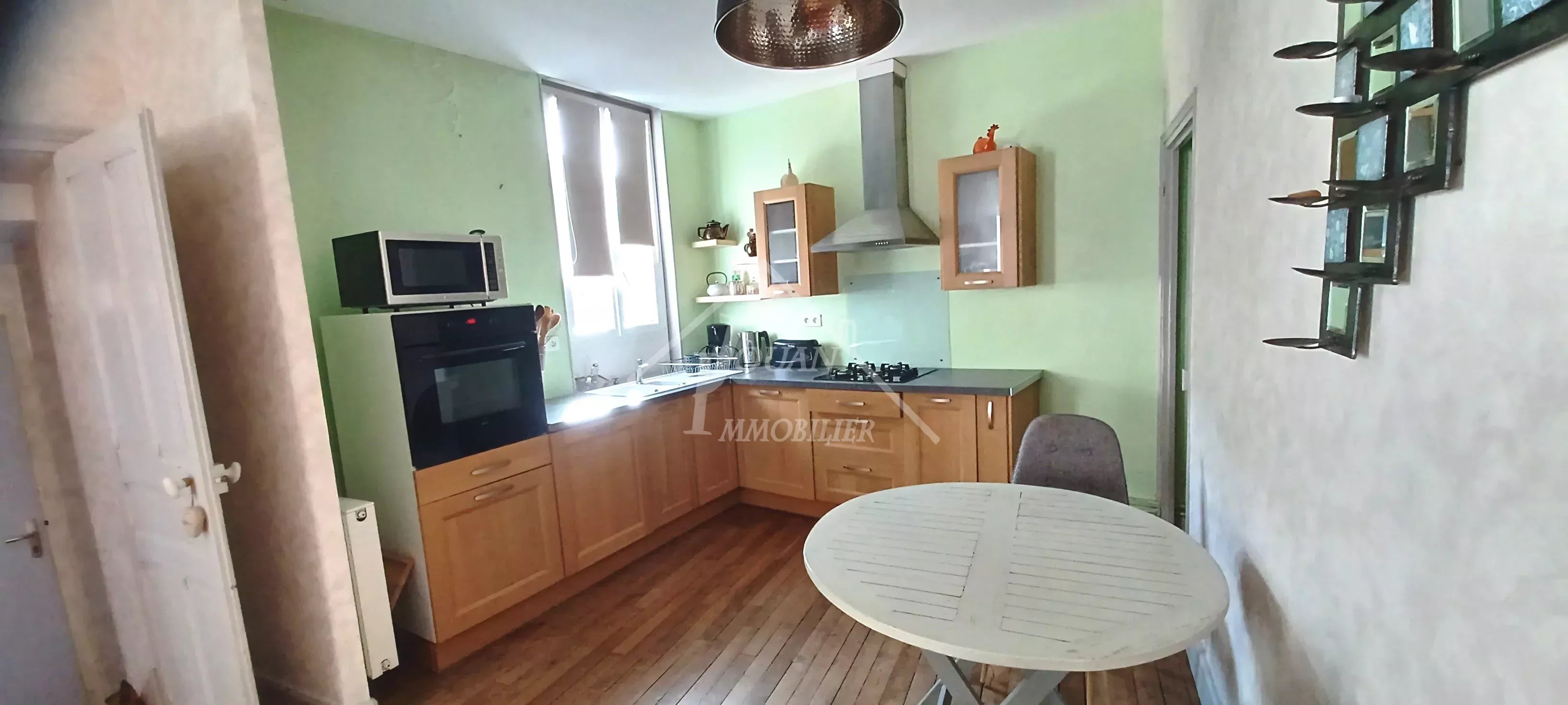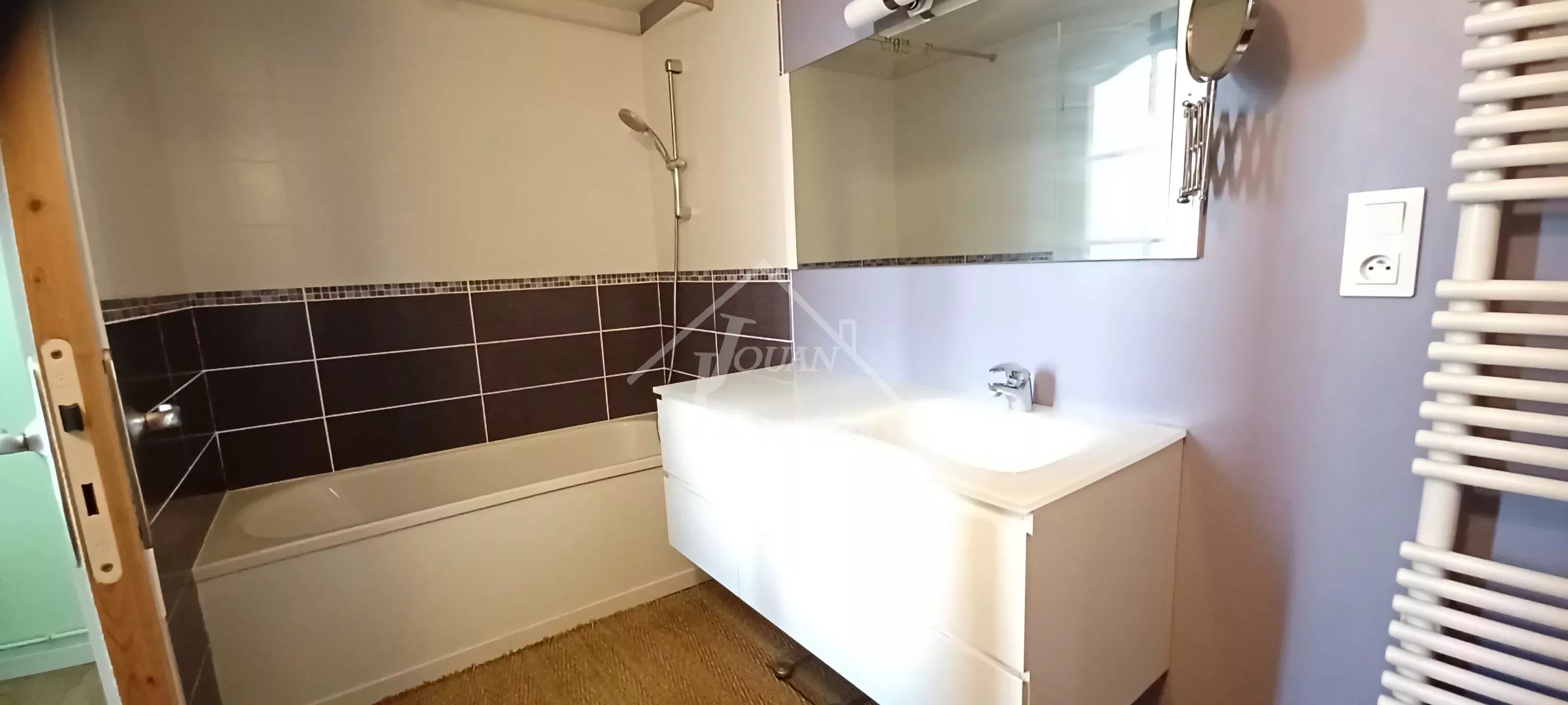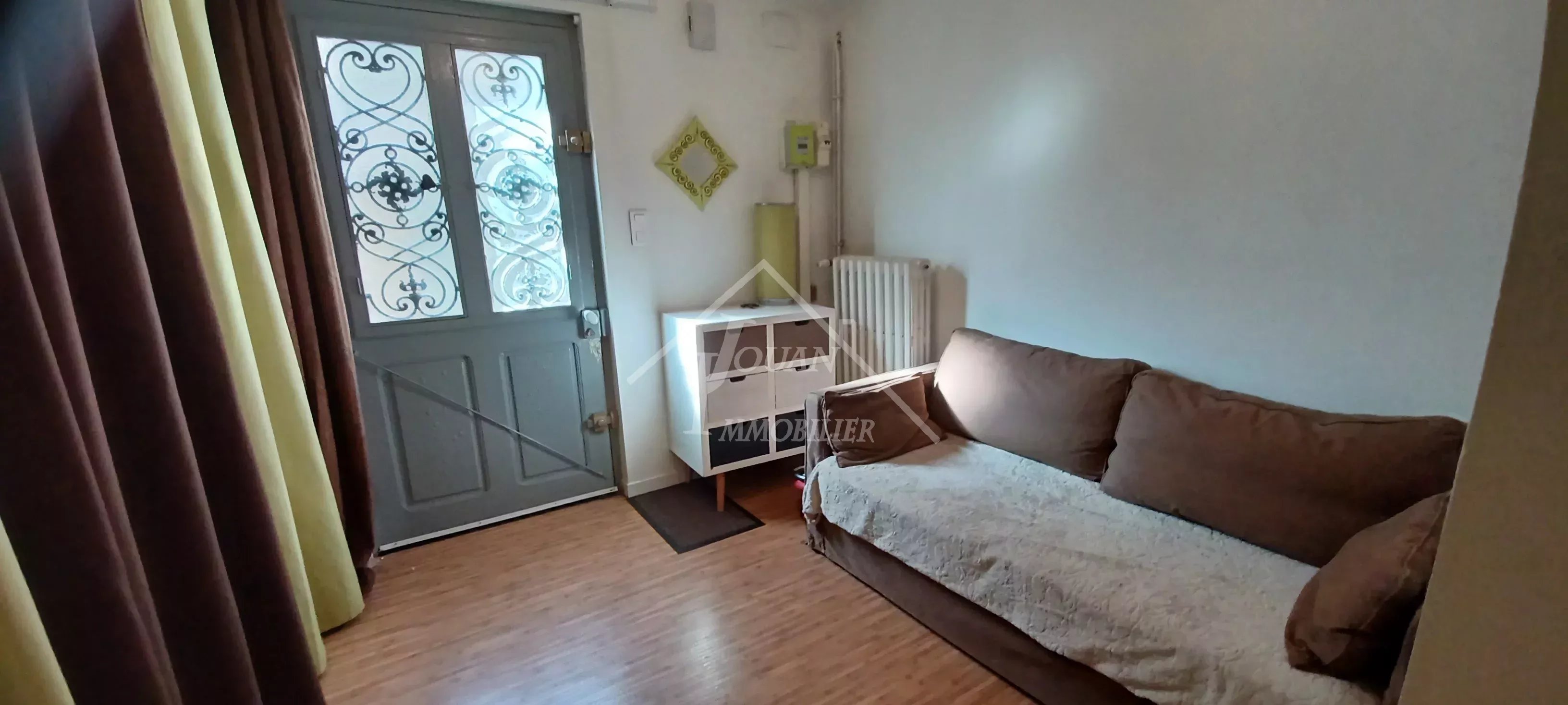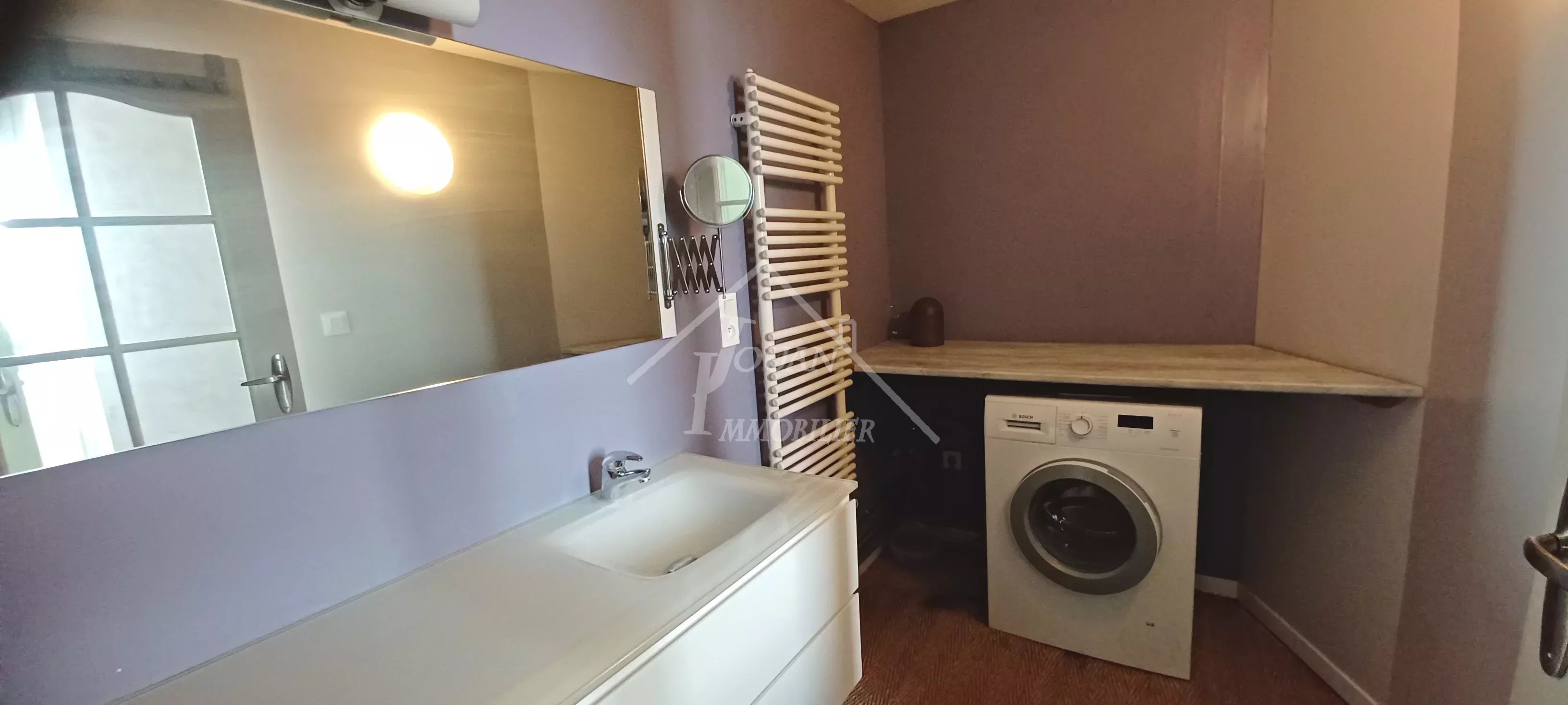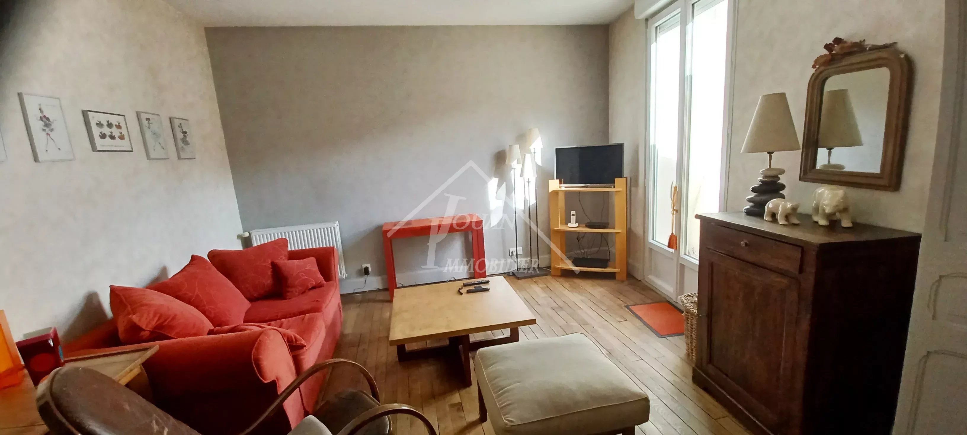 Maison-appartement confortable avec terrasse et 2 chambres.(maison de ville individuelle) Rez de chaussée pièce entrée avec penderie, bureau. Au 1er étage : grande pièce de vie avec cuisine aménagée-équipée et salon très clair avec baie ouvrant sur terrasse SUD/SUD-EST sans vis à vis ; 2 chambres, dressing, placard, salle de bains avec lave-linge, toilettes séparées. Parquets de chêne cirés ; Double vitrage ; Chauffage central gaz de ville. Entièrement meublée et équipée. Toutes périodes ou à l'année. Idéal pour personne seule ou jeunes retraités ne souhaitant plus d'entretien de jardin. Tous les commerces et marché à pied. Loyer mensuel :520 + 30 Taxe enlèvt ord. mén. et abonnt fibre Tél + TV./ Abont et Conso EAU, GAZ et ELEC à la charge du locataire. (compteurs indépendants)
