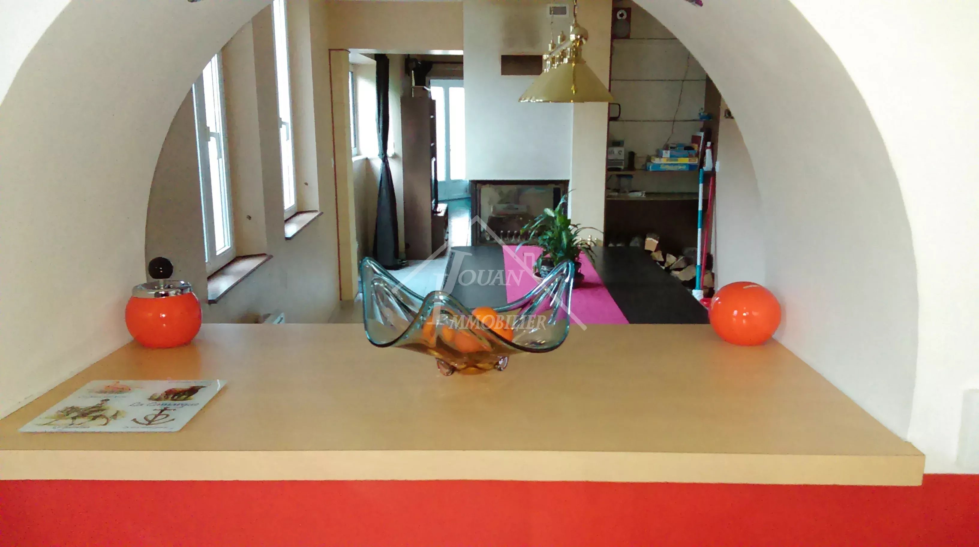 Maison originale, très bien rénovée, non visible de la rue...! Profitez de la situation plein bourg, sans bruit de circulation ...entre l'appartement et la maison, sans entretien extérieur. Entrée desservant en rez de cour, de plain-pied, salon et séjour-salle à manger en enfilade avec insert-cheminée des deux côtés et renvoi de chaleur, cuisine aménagée-équipée, toilettes ; et à l'étage un bureau (couchage 1 personne), une chambre et salle d'eau attenante avec wc. Cave accessible de l'intérieur. Double vitrage, électricité, 2014 ; Bonne isolation. Couverture parfaite 2008. DPE en cours. Idéale pour personne seule, jeune couple ou pied à terre avec possibilité de location saisonnière et Rb&b. A 10 minutes de Moulins et de Bourbon l'Archt, bocage et forêt à proximité.
