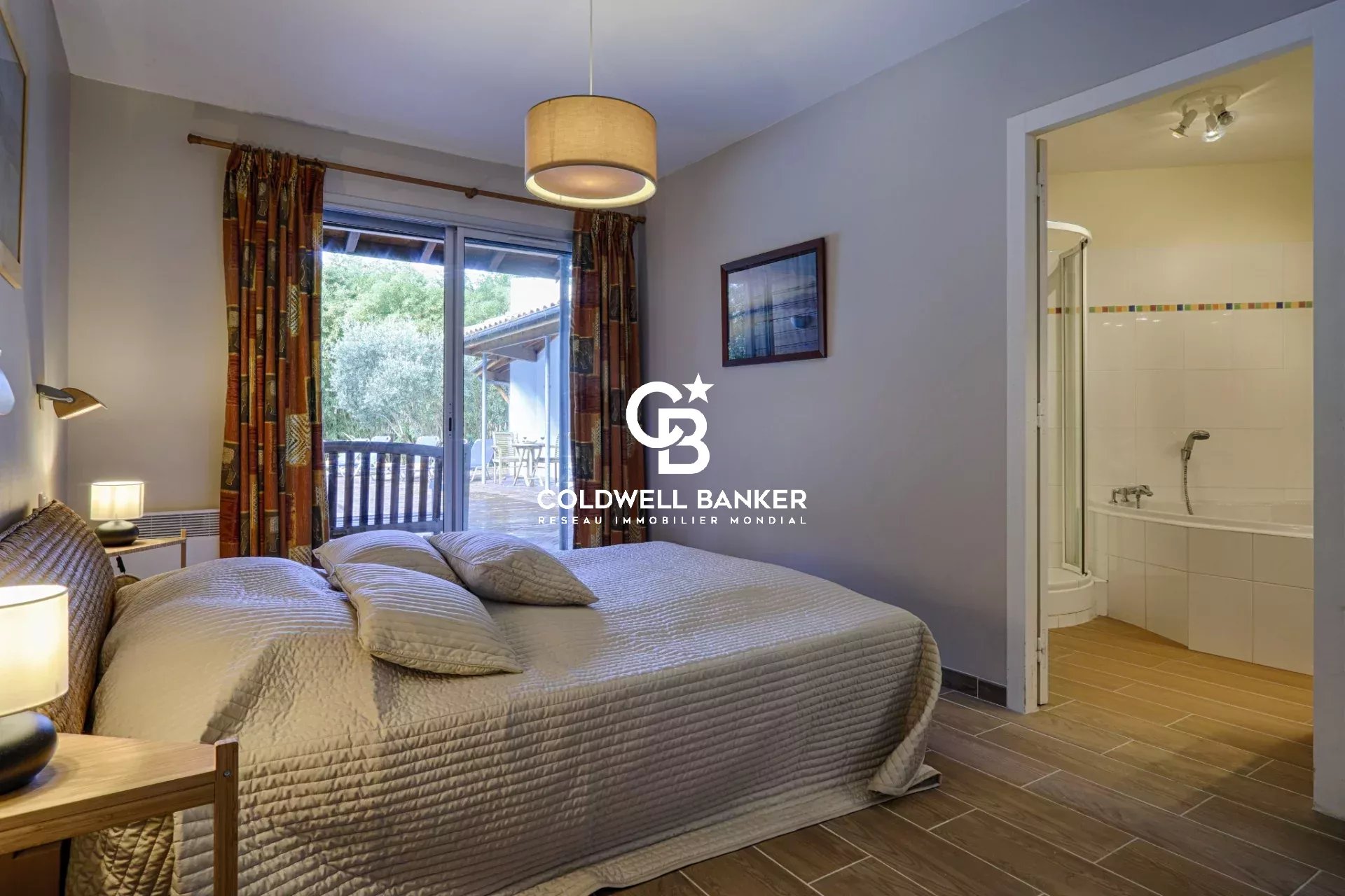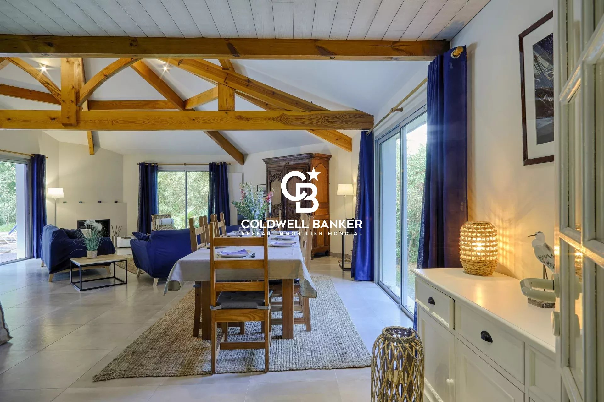 EN EXCLUSIVITE - BISCARROSSE-GOLF - Coldwell Banker Immoba Realty Agence Immobilière Arcachon, vous présente, au sein du prestigieux Golf de Biscarrosse, cette villa familiale avec piscine à deux pas du lac. Nichée dans un écrin de verdure, à l’abri des regards, cette magnifique propriété offre un cadre de vie rare, alliant calme absolu, proximité du lac, et lumière naturelle omniprésente grâce à ses grandes baies vitrées et son exposition idéale. Un véritable havre de paix, dans l’environnement privilégié du golf de Biscarrosse. Une maison spacieuse, pensée pour le confort et la convivialité Construite en 2004, cette villa familiale a été agrandie en 2012 par la création d’un étage, puis rénovée avec soin en 2024. Elle développe aujourd’hui une surface généreuse répartie de manière fonctionnelle : - 5 chambres, dont 3 suites parentales avec salles d’eau privatives, - Une salle de bains supplémentaire, idéale pour la vie de famille ou les invités, - Une pièce de vie lumineuse avec plafond cathédrale, ouverte sur la terrasse et la piscine, - Une cuisine ouverte, un cellier, une buanderie, de nombreux espaces de rangement, - Une piscine chauffée au sel, parfaitement intégrée à un jardin paysager, - Un garage complète l’ensemble. Chaque espace a été pensé pour allier fonctionnalité et confort de vie, tout en préservant l'intimité de chacun. Un emplacement recherché, une opportunité rare : À quelques minutes à pieds du lac de Biscarrosse, du golf et à proximité des plages océanes, cette villa est aussi bien une résidence principale idéale, qu’un refuge secondaire pour les amoureux de nature et de tranquillité. Une belle opportunité à saisir au cœur du golf : Contactez-nous dès maintenant pour organiser une visite et vous laisser séduire par ce lieu unique. Dossier complet sur demande. Stéphanie GUEBEL, agent commercial indépendant, RSAC 892 794 124 - RCP 127 100 479 DPE C (122 kWhEP/m2.an), GES A (4 kgéqCO2/m2.an) Estimation des coûts annuel d'énergie : 2 180 - 2 980 € Prix de vente 1 150 000 € HAI, dont 52 000 € TTC d'honoraires à la charge de l'acquéreur (soit 4.74%). Retrouvez tous nos biens sur IMMOBA. Les informations sur les risques auxquels ce bien est exposé sont disponibles sur demande ou sur le site Géorisques : www.georisques.gouv.fr.