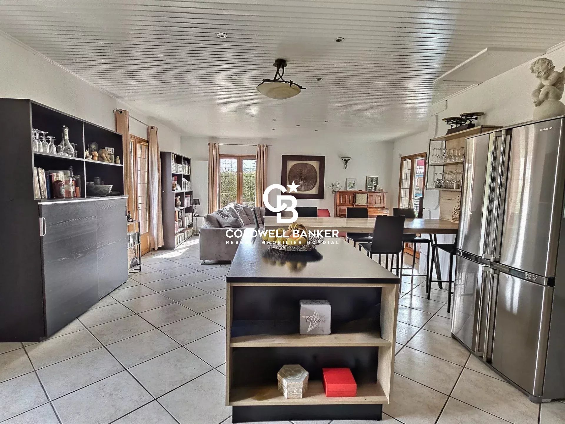 Coldwell Banker Immoba Realty Agence Immobilière, vous invite à découvrir, EN EXCLUSIVITE, à Biscarrosse-Bourg, cette spacieuse maison de type 6 et de plain-pied, d'un peu plus de 180 m², édifiée sur une parcelle paysagée de près de 1 060 m². Vous serez immédiatement séduit par sa magnifique pièce de vie de 120 m², baignée de lumière, avec véranda intégrée offrant une vue panoramique sur le jardin arboré. Sa cheminée suspendue en fait un élément de décoration original. La cuisine, entièrement aménagée et équipée, de très belle facture, s’ouvre harmonieusement sur l’espace de vie, idéal pour recevoir en toute convivialité. La partie nuit se compose de quatre chambres, dont une suite parentale avec salle de bains, une seconde salle de bains et deux toilettes. Une buanderie complète les prestations de cette maison alliant confort et fonctionnalité. En annexe, vous profiterez d’un double garage de 50 m², offrant un bel espace de rangement ou de stationnement sécurisé pour deux véhicules. Cette maison, parfaitement entretenue à l'intérieur comme à l'extérieur, est idéale pour une grande famille à la recherche de volumes généreux et d’un cadre de vie calme et verdoyant. Ce bien est une belle opportunité pour ceux qui recherchent une maison fonctionnelle et agréable à vivre, proche de tout. Ne manquez pas cette chance de visiter cette propriété qui allie confort et praticité. Pour une visite, contactez Stéphanie GUEBEL, agent commercial indépendant, RSAC 892 794 124 - RCP 127 100 479 DPE C (113 kWhEP/m2.an), GES B (6 kgéqCO2/m2.an) - ANCIENNE VERSION Honoraires à la charge du vendeur. Retrouvez tous nos biens sur IMMOBA. Les informations sur les risques auxquels ce bien est exposé sont disponibles sur demande ou sur le site Géorisques : www.georisques.gouv.fr.