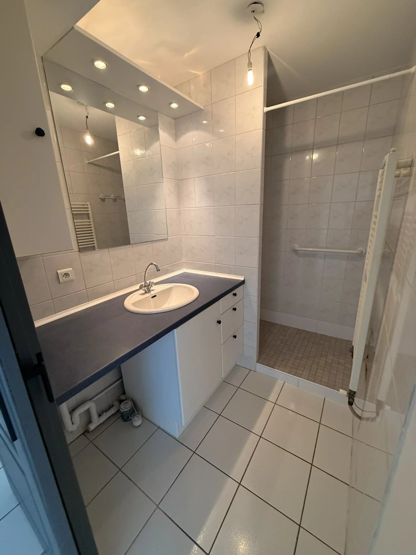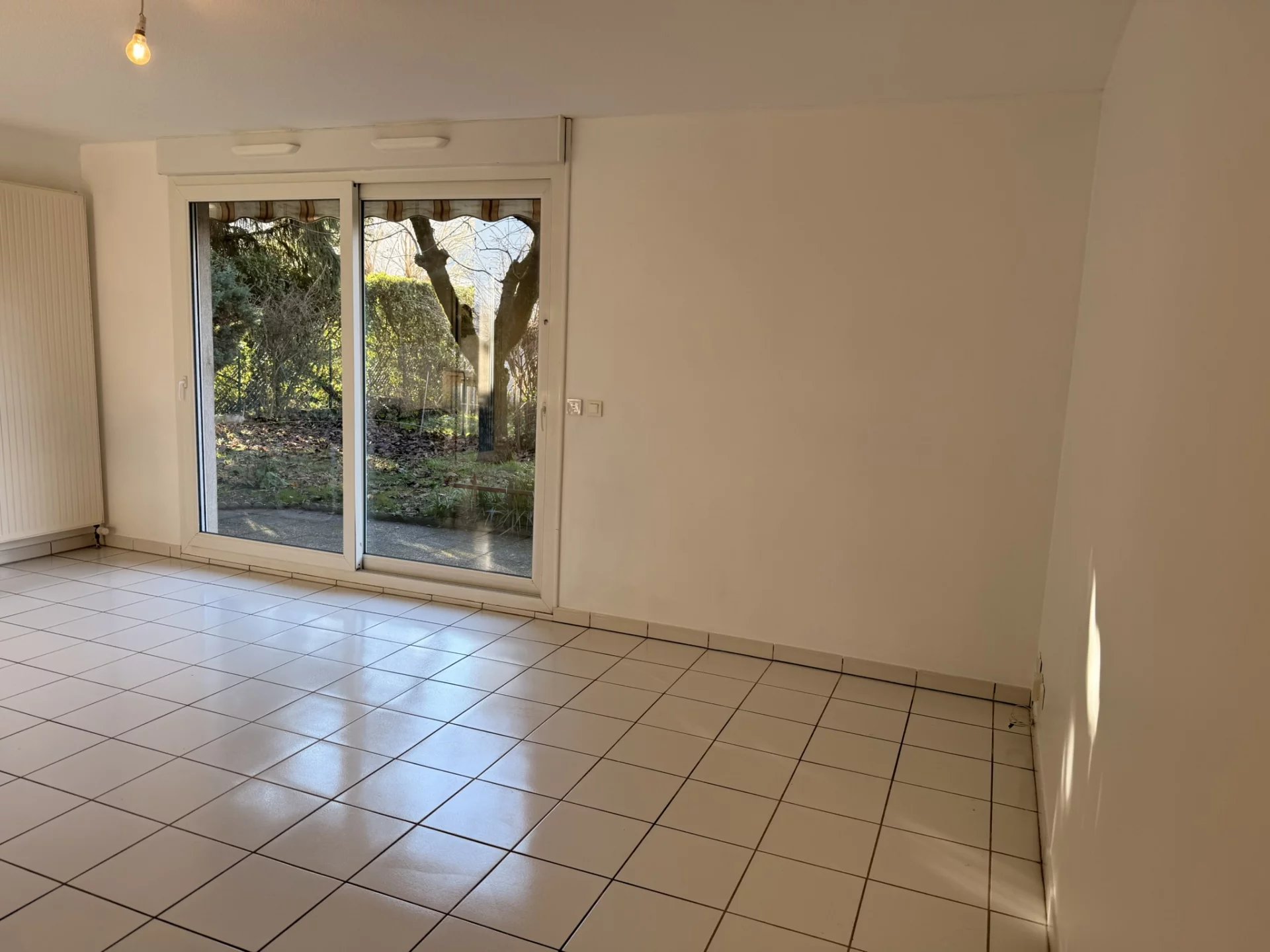 A louer, appartement de type T3 d'une surface habitable de 63,48 m2, situé au rez-de-jardin, avec jardin attenant, terrasse avec store.