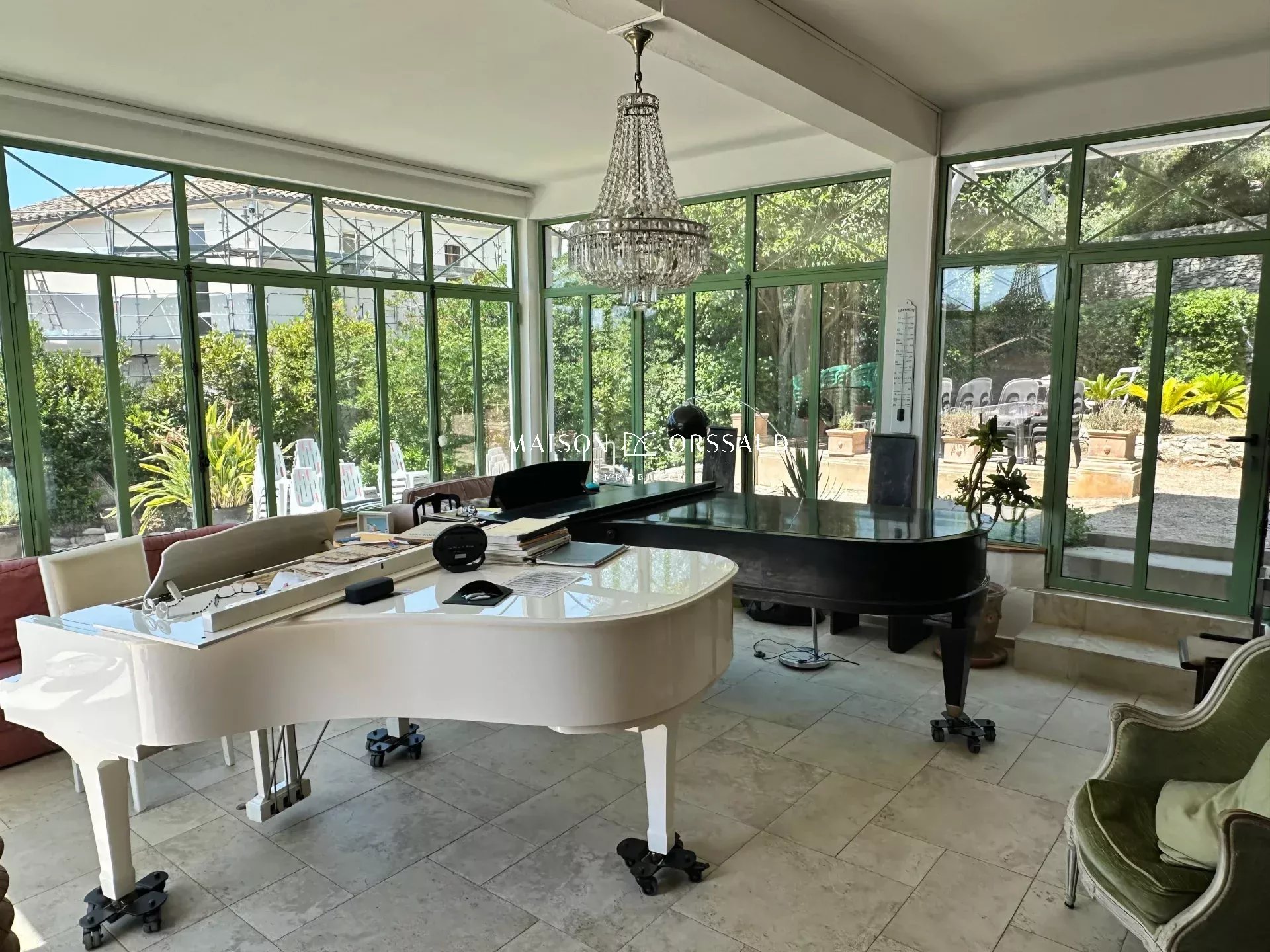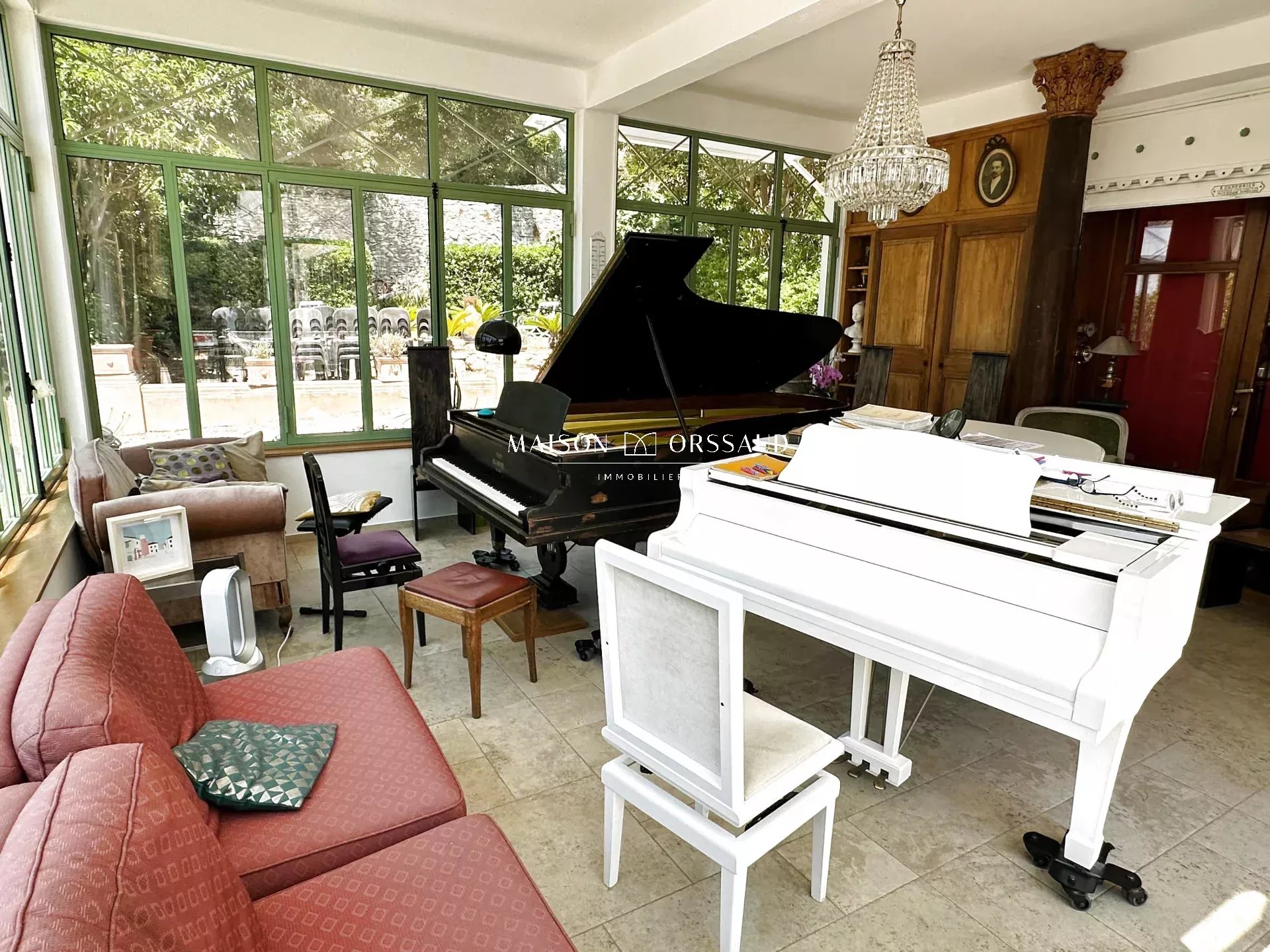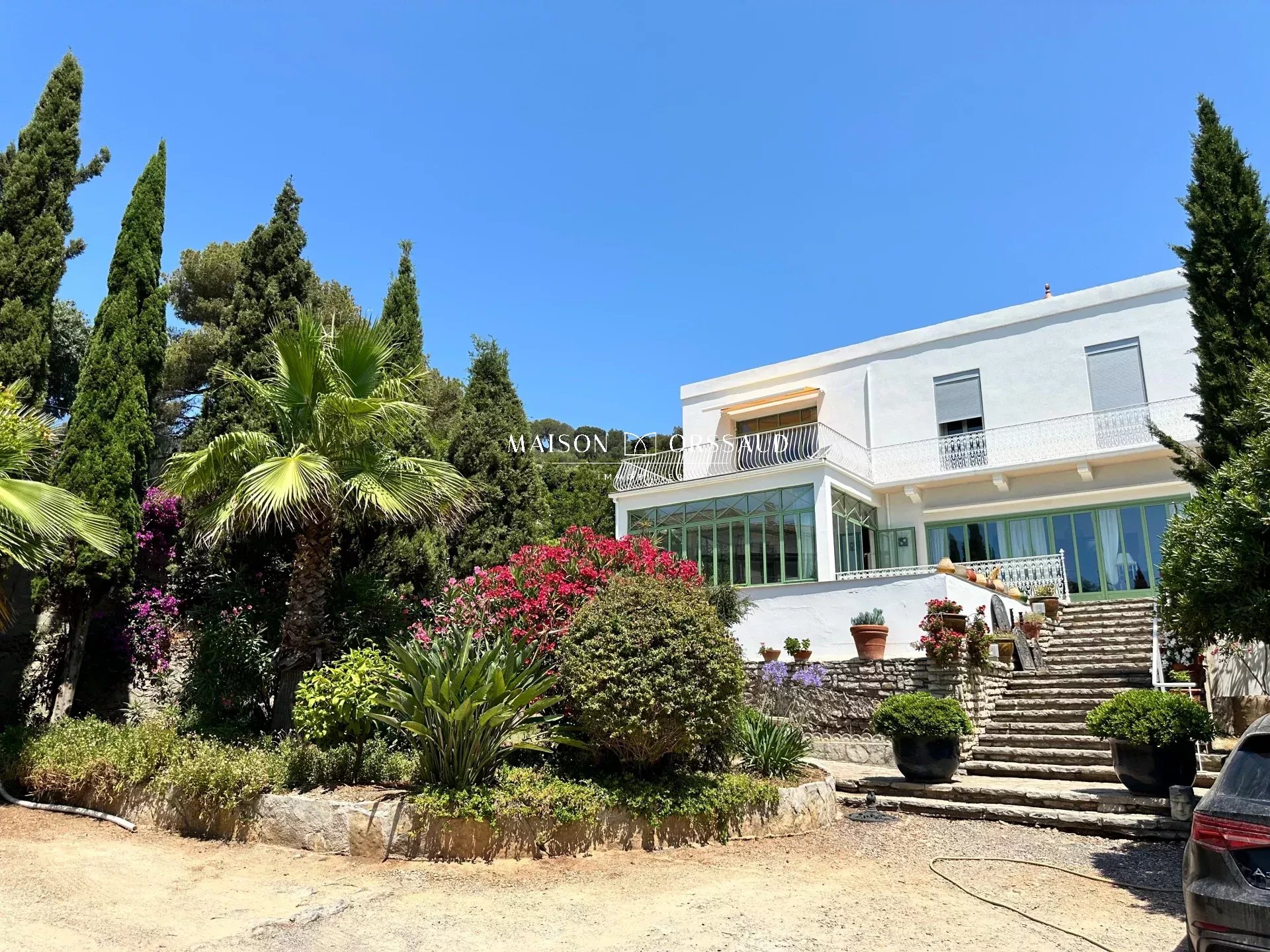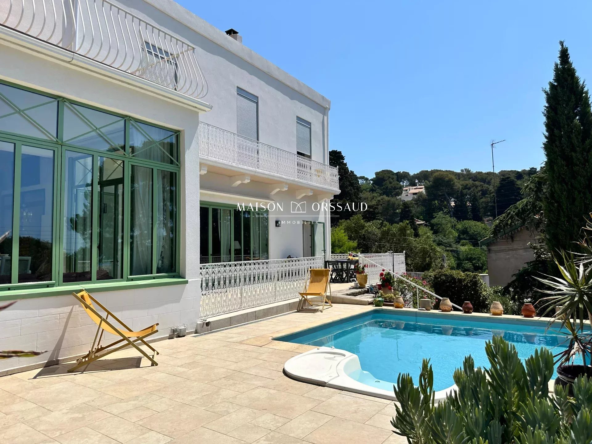 Propriété de 1720 m², au calme et à l'abri des regards et des vents dominants, avec sa maison de campagne sétoise au charme d'antan, édifiée en 1860, d'une surface de 255 m² située sur le Mont Saint Clair face à la grande bleue dans un parc paysagé aux multiples essences méditerranéennes. Au rez-de-chaussée donnant sur terrasses, parc et piscine (150 m²) : La partie propriétaire avec un grand salon lumineux, d'un côté une climatisation reversible et de l'autre son poêle à bois, prolongé d'une magnifique véranda 1900 avec des menuiseries en acier galvanisé, le tout donnant sur le parc et la piscine tout comme la cuisine des années 60 toute équipée recouverte de carreaux de ciment donnant directement sur la terrasse. Une grande chambre de 20 m² avec triple accès sur extérieur, véranda et salle d'eau. Une cave à vin complète ce niveau. À l'étage avec vue imprenable sur la mer (105 m²) : Cet étage a été divisé en 2 appartements indépendants l'un, type T1, de 40 m² avec balcon et l'autre, type T2, de 65 m² avec une terrasse de 50 m². Il est possible de remettre la configuration initiale de quatre chambres. La division a permis une gestion plus aisée de l'intimité. La maison peut accueillir plusieurs familles ou locataires pour revenus fonciers complémentaires La modularité des espaces permet d'adapter l'usage selon les situations. Au delà du parc, il y a un jardin d'agrément, un jardin paysager, un potager, des espaces de réception, 2 grands garages (2 x 20 m²) la possibilité de stationner en supplément 6 véhicules, un local technique pour la piscine (4 X 4 m), un abri jardin, une chaufferie et un grand local sous la terrasse. Chaudière au gaz de ville et tout à l'égout. Maison au calme, sans vis à vis et très lumineuse avec une quadruple expositions. Nombreux éléments et matériaux nobles tels que moulures, huisseries en acier galvanisé, vitraux, carreaux de ciment, fer forgé... Ce lieu d'exception se prête autant à des réceptions grandioses dans et autour de cette somptueuse véranda d'époque et les différents espaces extérieurs qu'à la vie d'une grande famille en résidence principale ou secondaire. Domaine idéalement situé sur le Mont Saint Clair avec plages et commerces de la Corniche à moins de 10' à pied.