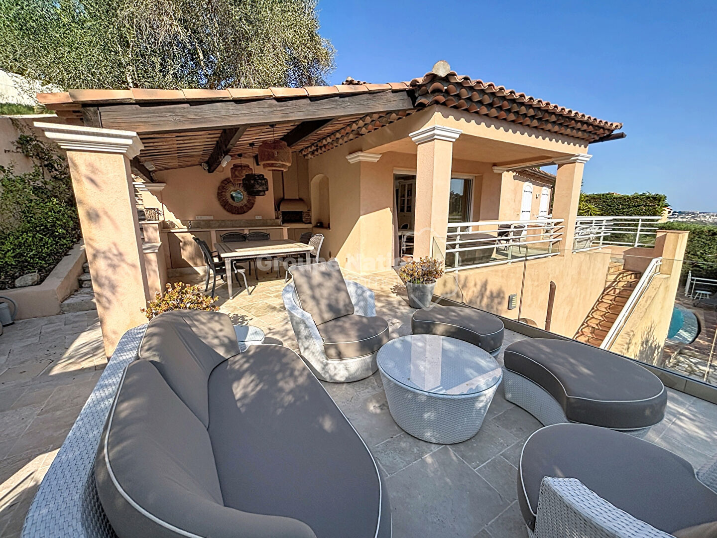 Votre agence AGRESTA IMMOBILIER vous propose à la vente sur la ville de MANDELIEU LA NAPOULE une villa 6 pièces au prix de 1 280 000 euros. En position dominante dans le secteur de Capitou et bénéficiant d'une belle vue mer, cette villa traditionnelle vous propose à l'entrée une chambre en suite avec dressing. Le niveau inférieur vous offre un séjour / salle à manger ouvrant sur une belle terrasse vue mer, une cuisine ouverte avec accès à un vaste sous-sol et deux chambres avec salle d'eau. Pour finir en RDJ, deux chambres en suite et dressing avec accès à l'espace piscine. Nombreux stationnements possibles. N'hésitez pas à nous contacter au 04 93 36 35 14 pour plus d'informations ou convenir d'une visite.
