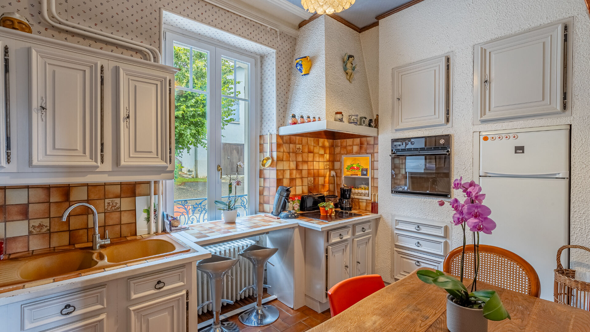 Cette charmante propriété, datant de la fin du XIXe siècle, est située sur un terrain de 2000m2. Elle dispose d'une annexe offrant un potentiel habitable, ainsi que des garages. La maison principale s'étend sur deux niveaux, totalisant environ 160m2, et bénéficie d'une véranda orientée vers l'Ouest. Les combles offrent également la possibilité d'aménagements supplémentaires. La vue depuis la propriété est entièrement dégagée, offrant un panorama sur la ville, le lac et la Dent du Chat. Malgré sa proximité avec le centre-ville, l'emplacement de la propriété bénéficie d'un environnement calme et paisible. Cathy Dubouchet (EI) Agent Commercial - Numéro RSAC : 742 349 944 - Chambery.