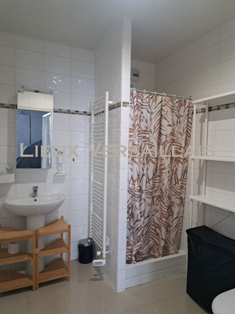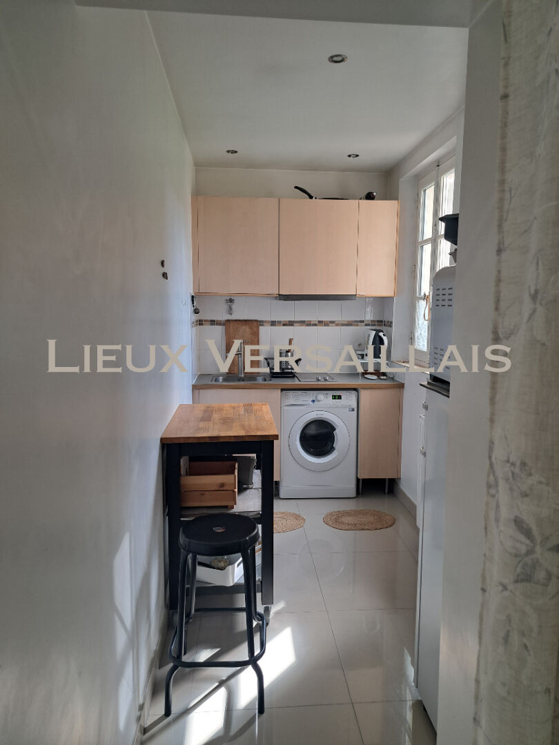 Versailles, entre gare des Chantiers et gare Rive Gauche, dans un environnement privilégié. Agréable studio de 28,1 m², en rez-de-chaussée en très bon état, dans immeuble XVIIIe entièrement réhabilité. Entrée avec placards, cuisine équipée (plaques vitrocéramiques, hotte, réfrigérateur), pièce de vie de 18 m², salle de douche + wc. Normes handicapés. Chauffage collectif.