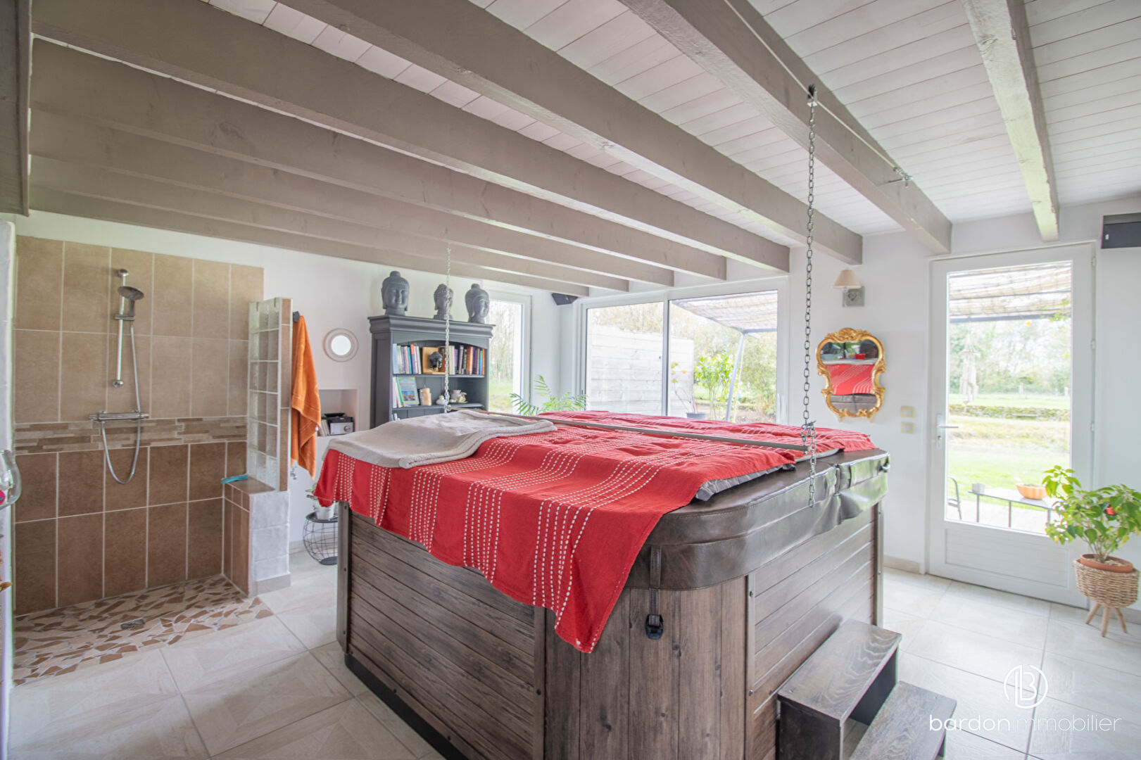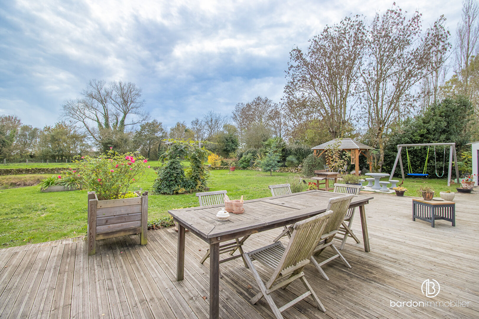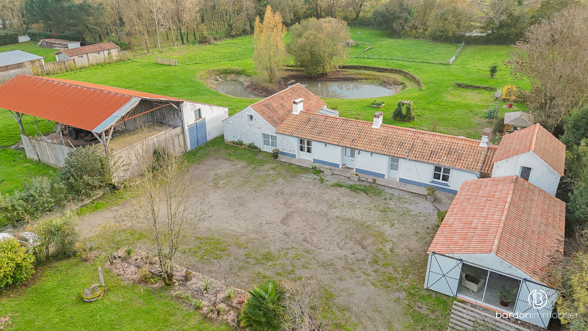 EXCLUSIVITÉ BARDON IMMOBILIER - MAISON 3 CHAMBRES 137M² + ENVIRON 230M² DE DÉPENDANCES SUR TERRAIN DE 8800M² Venez découvrir cette superbe maison de 137m² habitables, entièrement rénovée en 2016. Elle offre une pièce de vie lumineuse avec cuisine ouverte, un second salon, trois chambres (environ 10, 13 et 20m²), un dressing, une salle d'eau avec double douche, deux WC, une buanderie et une petite véranda. A l'extérieur, une belle terrasse exposée sud avec vue verdoyante, une première dépendance réhabilitée de 52m², une pièce de 10m² avec salle d'eau, un atelier et un hangar de 150m² partiellement fermé. Le tout est édifié sur une parcelle de 8800m² avec étang, dans un environnement très calme, à seulement 5 minutes de Challans.Coup de coeur assuré !Les informations sur les risques auxquels ce bien est exposé sont disponibles sur le site Géorisques: www.géorisque.gouv.fr (4.50 % honoraires TTC à la charge de l'acquéreur.)
