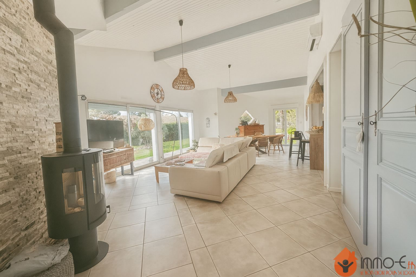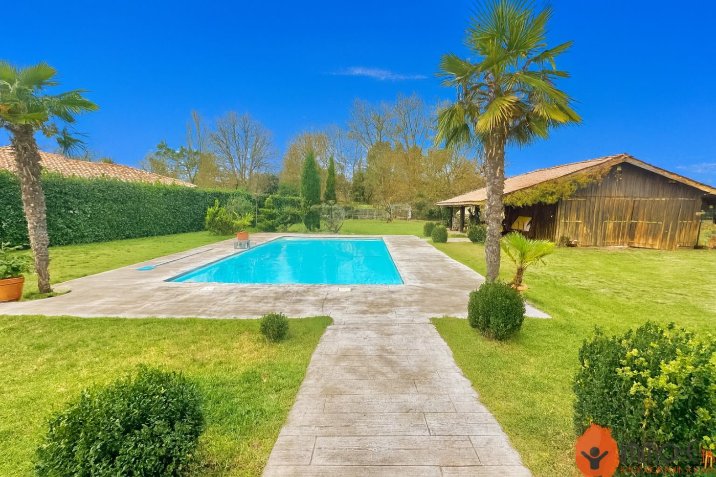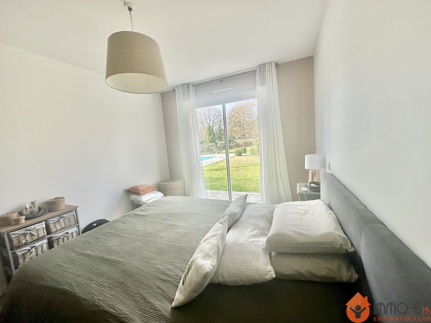 Belle maison familiale nichée sur un terrain verdoyant et boisé avec sa piscine.