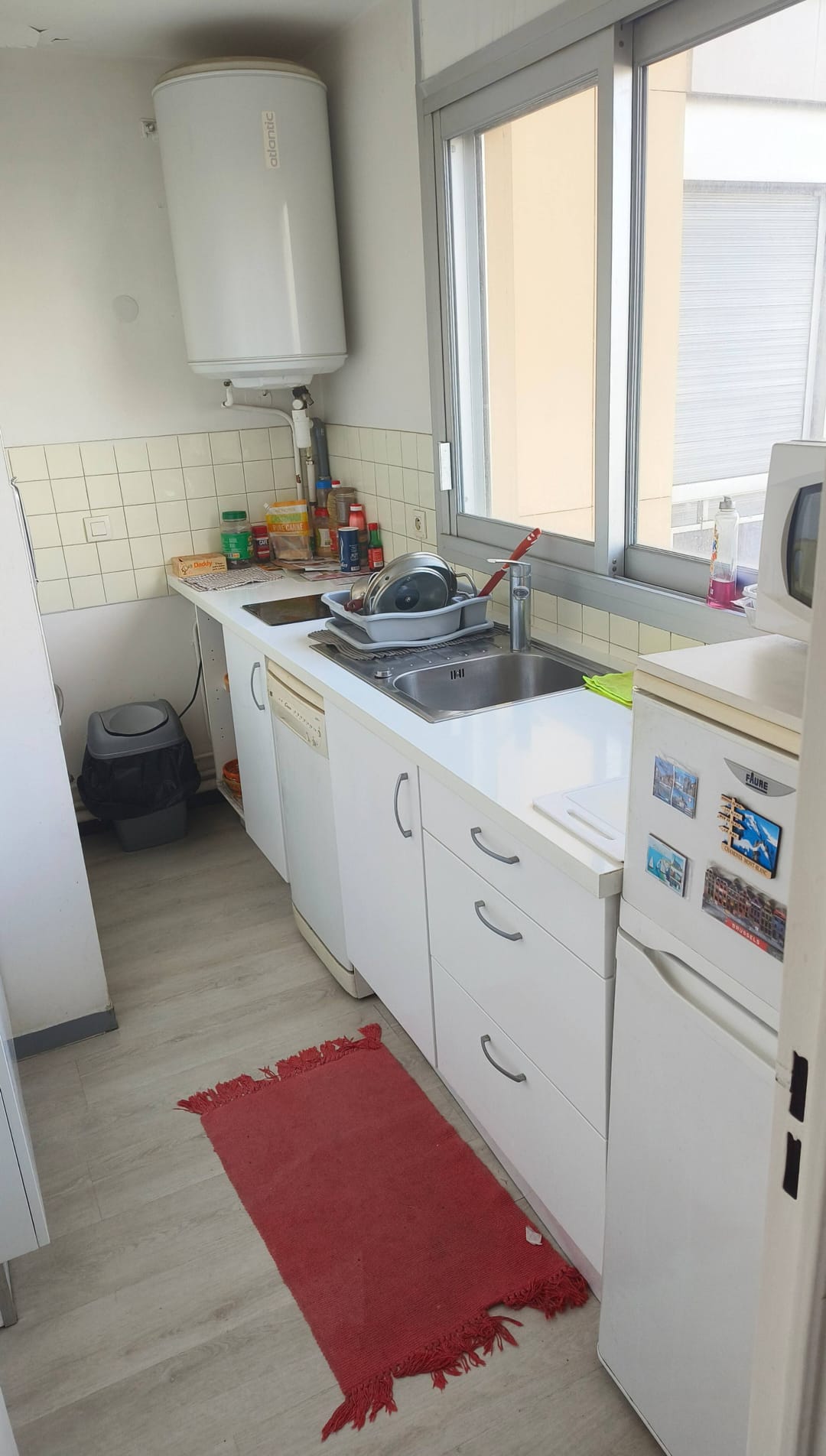 Cuisine indépendante entièrement meublée et équipée avec plaque à induction 2 foyers, un lave-vaisselle, un frigo, un micro onde, vaisselle et couverts.