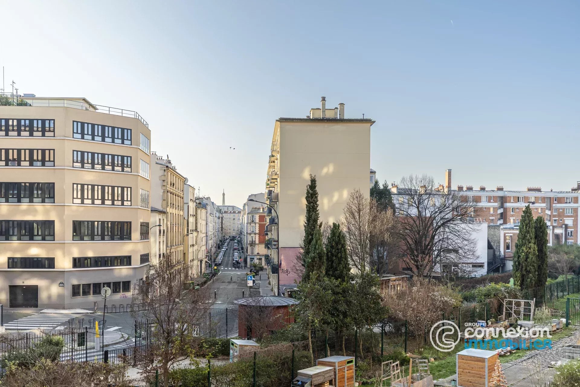 Paris 75017 en exclusivité! Dans un copropriété avec jardins, immeuble en briques, nous vous proposons un appartement comprenant : entrée avec rangements, un séjour avec cuisine ouverte, une chambre, une salle d'eau avec wc. Les points forts : vue dégagée avec la tour Eiffel en point de mire, pas de vis-à-vis, ensoleillé avec une exposition plein Sud, pas de place perdue, calme! A voir absolument! Les informations sur les risques auxquels ce bien est exposé sont disponibles sur le site Géorisques : www.georisques.gouv.fr POUR VOTRE PROJET, CONNEXION IMMOBILIER ESTIME GRATUITEMENT LA VALEUR DE VOTRE BIEN.