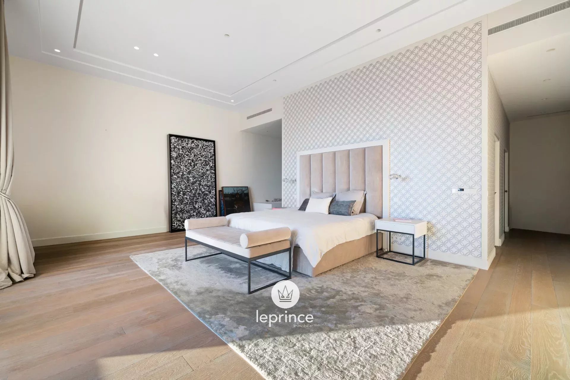 L'ingresso conduce a un salone di 130 m² con soffitti a doppia altezza e grandi finestre panoramiche.