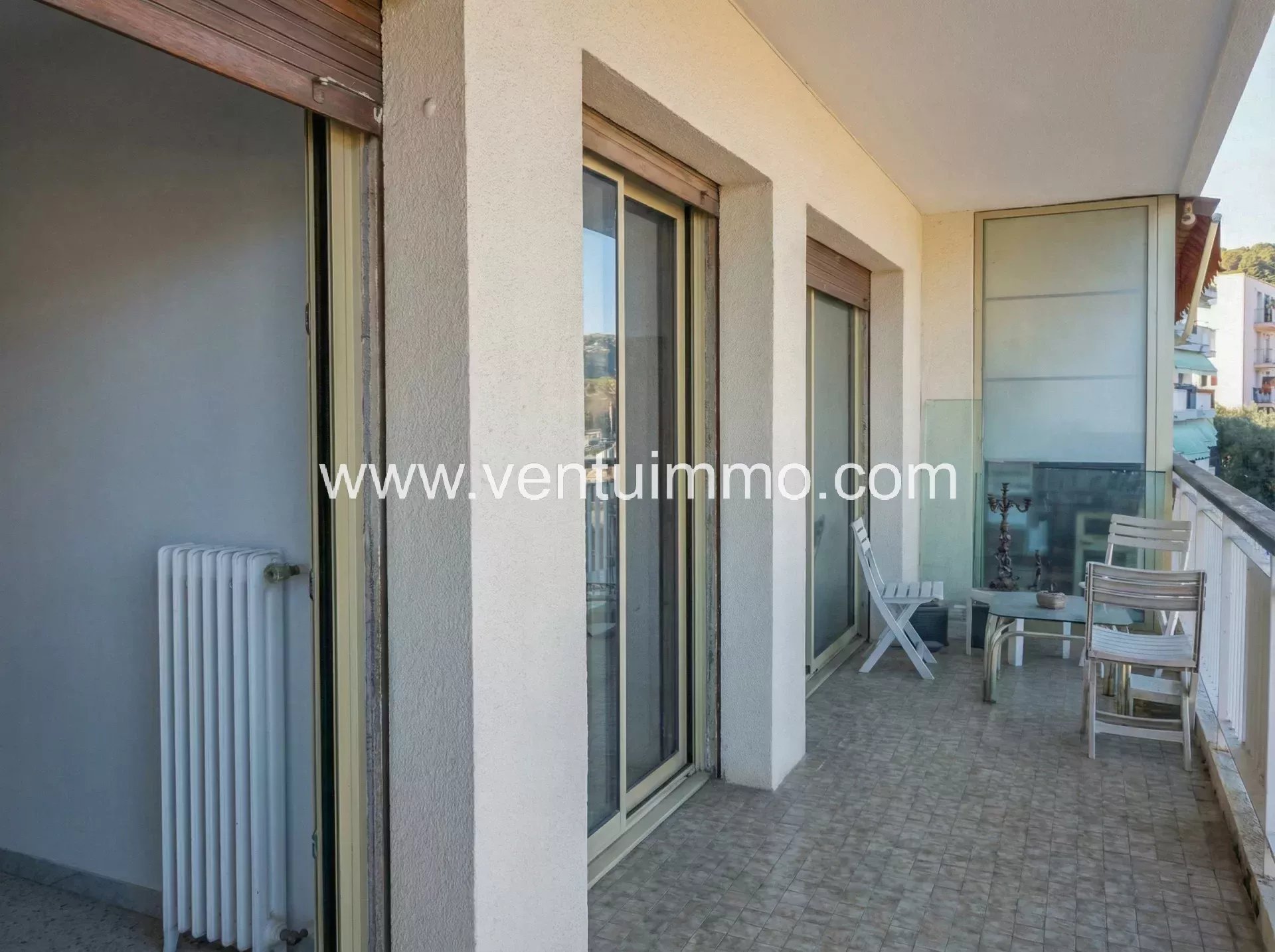 Il se compose d’une entrée, d’un séjour lumineux ouvrant sur un large balcon d’environ 15 m² offrant une vue très dégagée.