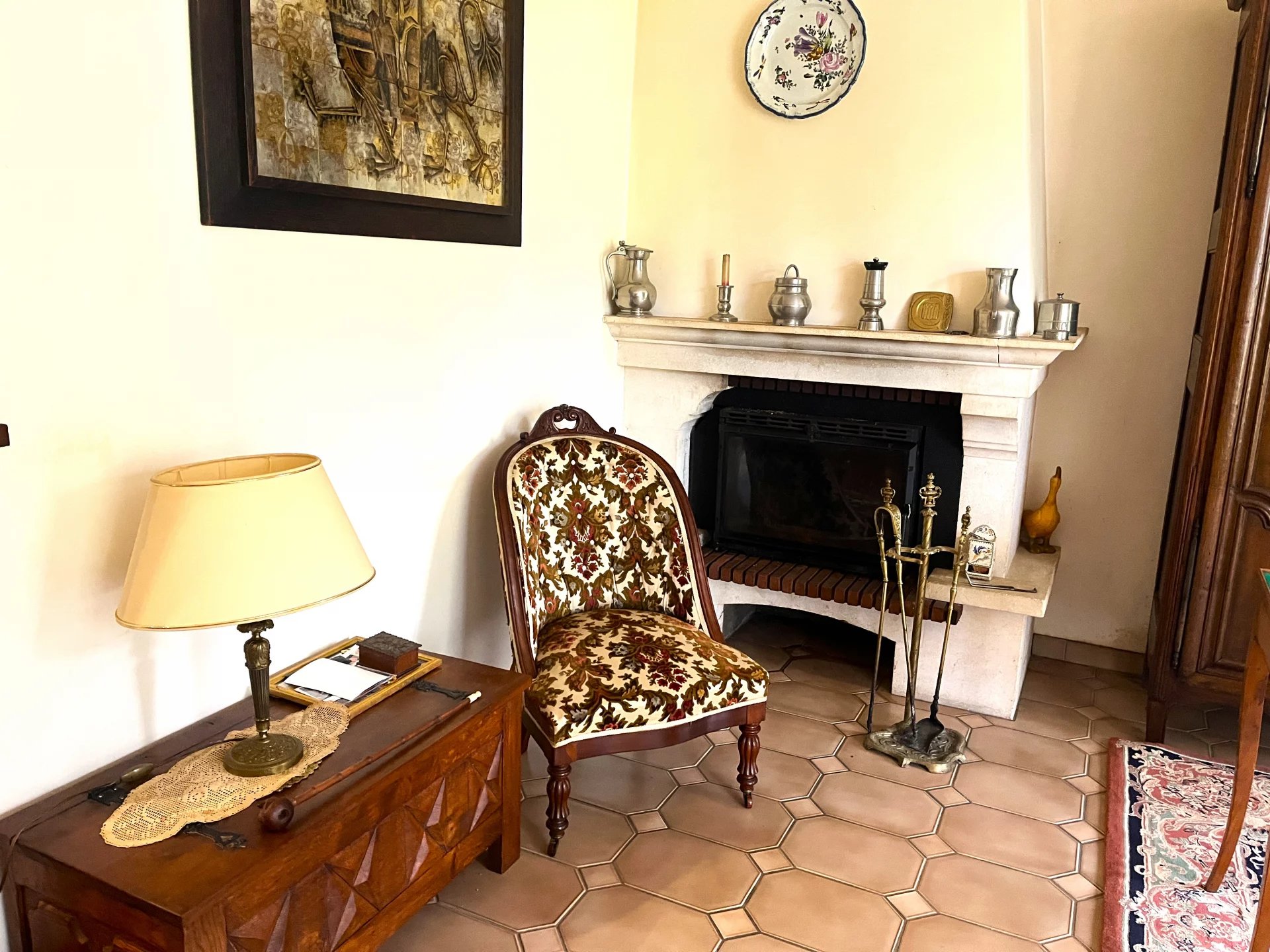 Entrée ouvrant sur un vaste séjour-salle à manger de 37m² baigné de lumière avec cheminée coté ouest sur immense jardin, une cuisine dinatoire exposée est, un WC.