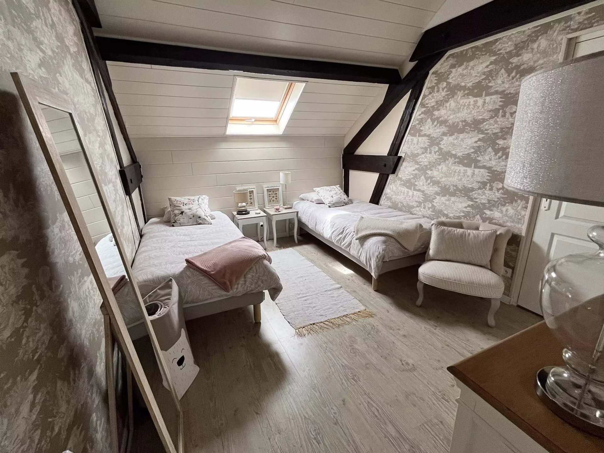 Venez découvrir cette magnifique propriété normande entièrement rénovée, idéal pour un projet de résidence principale ou secondaire en famille, cette propriété, à la décoration soignée, vous séduira par son charme et ses volumes, 5 chambres dont 2 avec leur salle de douche et w-c, bureau, pièce de jeux ou couchage supplémentaire, cuisine entièrement aménagée et équipée, cellier, belle pièce de vie lumineuse avec cheminée et accès jardin, une pièce palière avec billard, une salle de douche et un w-c viennent completer l'ensemble...jardin clos et sans vis à vis avec coin détente et parking extérieur. À seulement un petit kilomètre du centre et de la plage !
