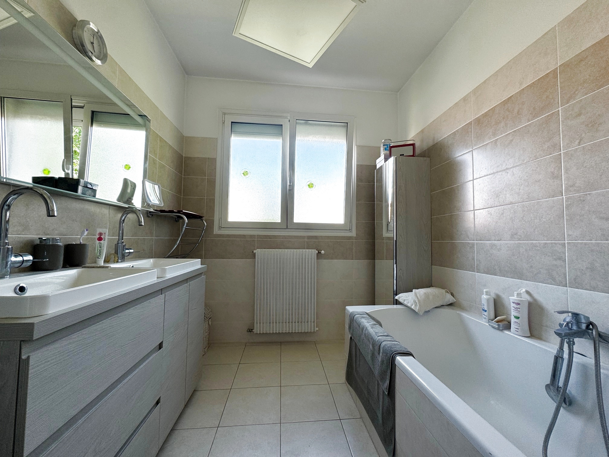 Belle maison individuelle de 8 pièces de 220 m2 habitable élévée sur sous sol total et 1271 m2 de terrain comprenant entrée, séjour salle à manger avec cheminée insert, cuisine ouverte équipée, 3 chambres, salle de bains, wc. A l'étage: pièce palière, 3 chambres dont une suite avec espace bureau et salle d'eau avec wc, salle de bains avec wc. Vaste sous sol total avec espace chaufferie, buanderie, cave à vin, rangement, garage 2 voitures, salle de jeux ou sport. Abri bois.Nombreuses places de parking exterieur.